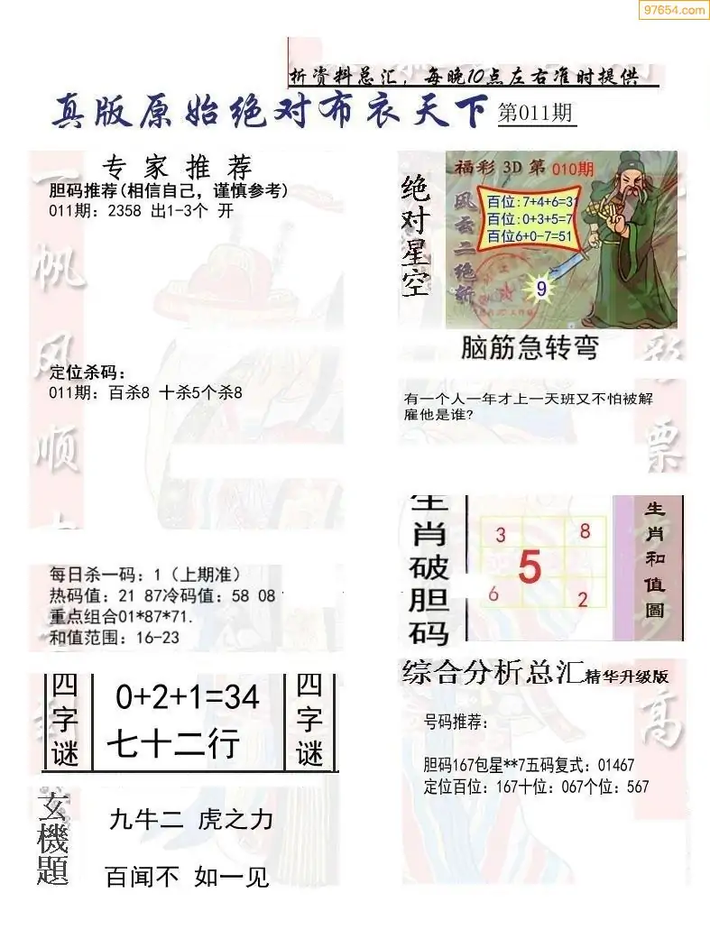 (1)26年011期今日3d图谜总汇_3d图库全图汇总