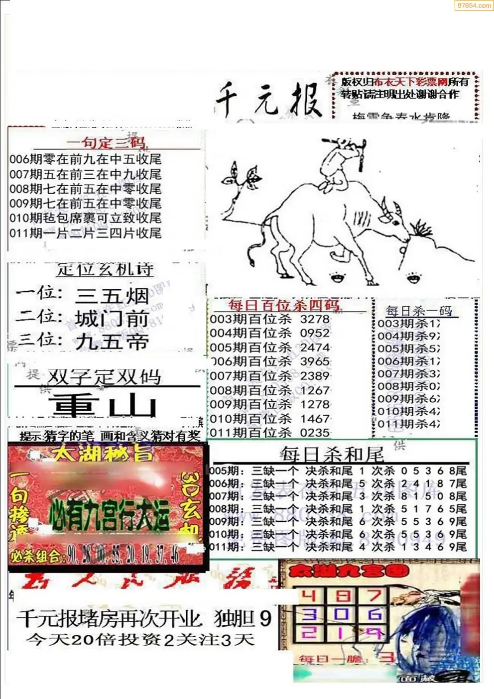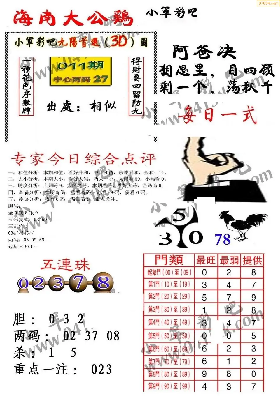 (9)26年011期当期全站杀号定胆图