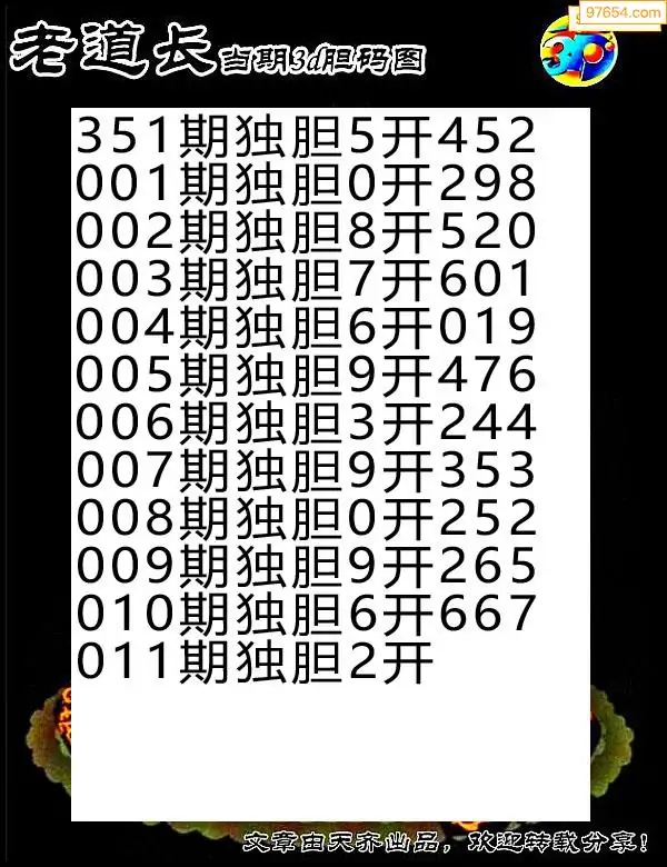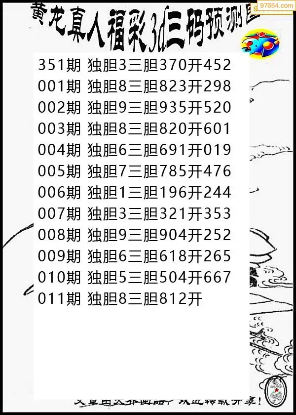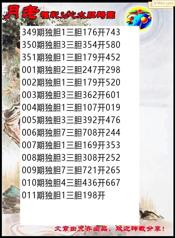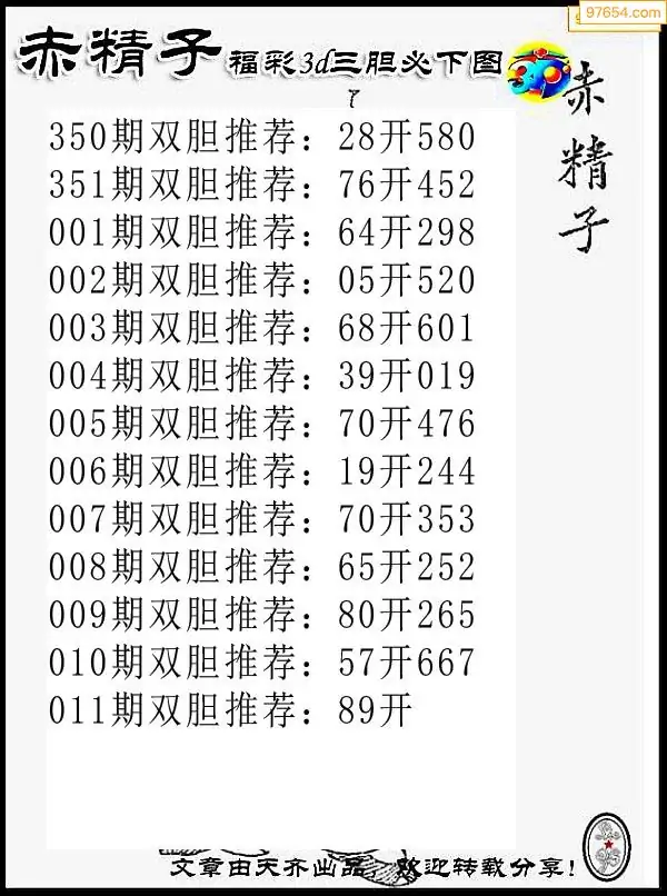 011期97654本站收集胆码出号预测