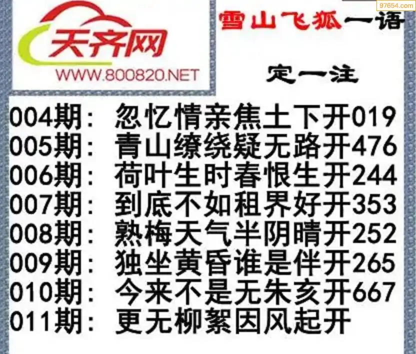 彩票3d字谜011期雪山飞狐一语定一注
