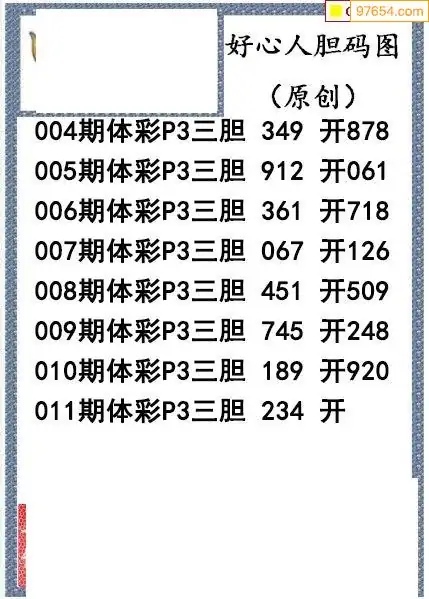 26011期好心人送胆排列三图谜
