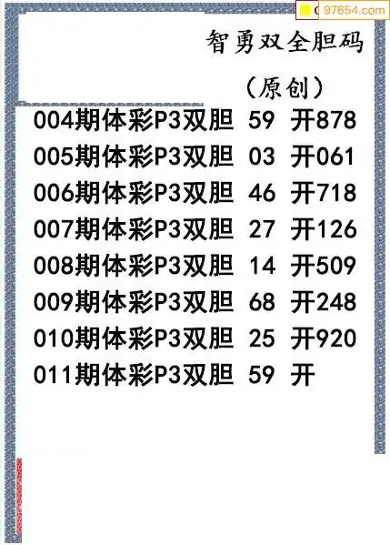 26011期今日P3图迷智勇双全双胆