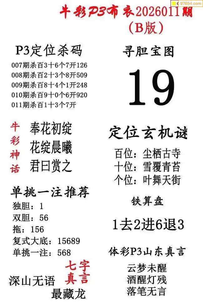 2026年011期北盟天机图+p3仙机图谜 _排三图谜专区