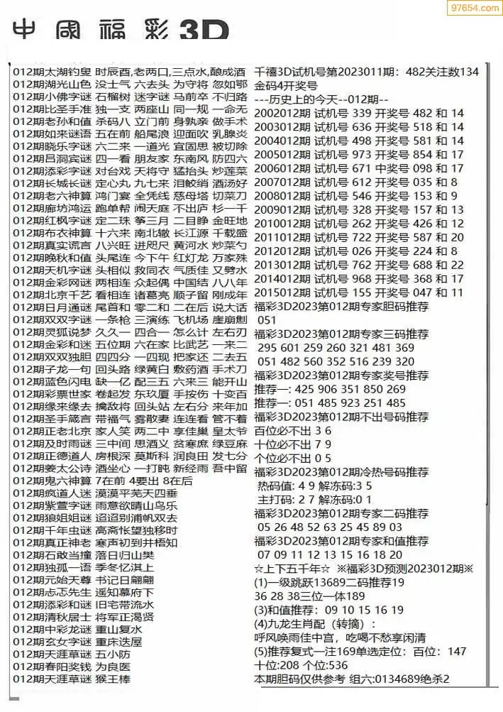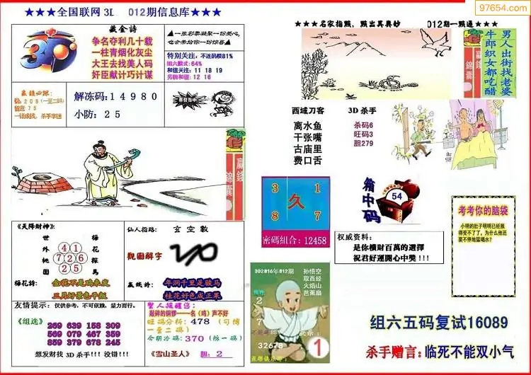福彩3D012期天牛彩吧套图整合总汇