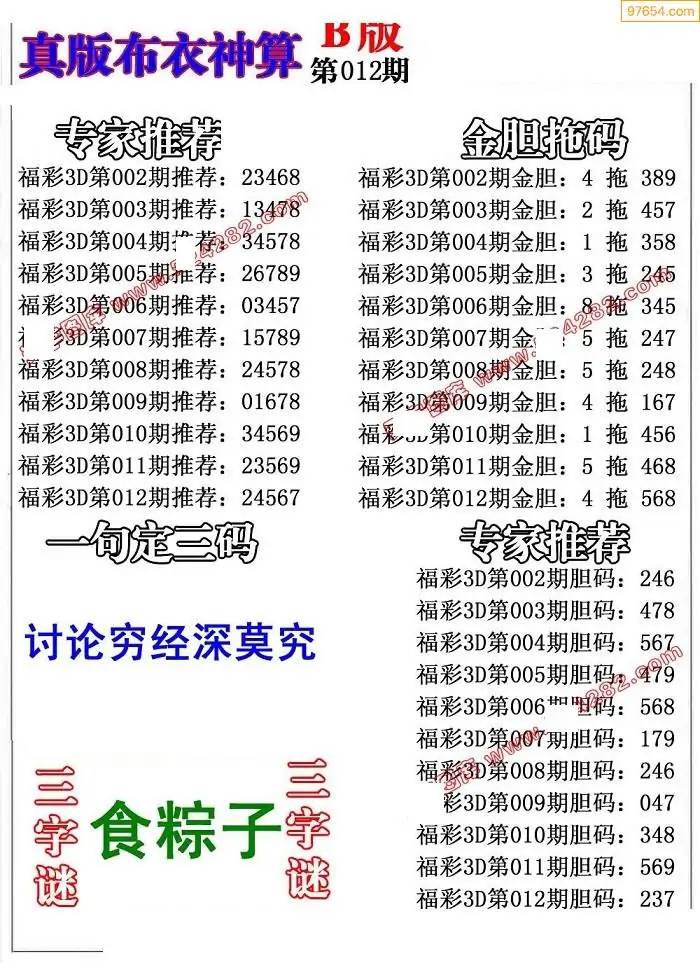 福彩012期3d真精华布衣+布衣早报(转载)