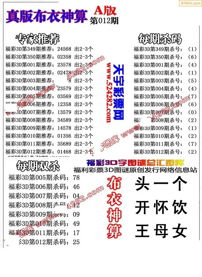 26012期早版布衣天下3D图迷