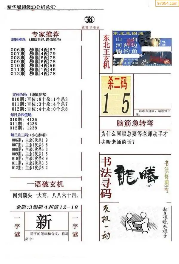 (3)2026012期3D预测总汇全图_福彩3d图谜字谜总汇
