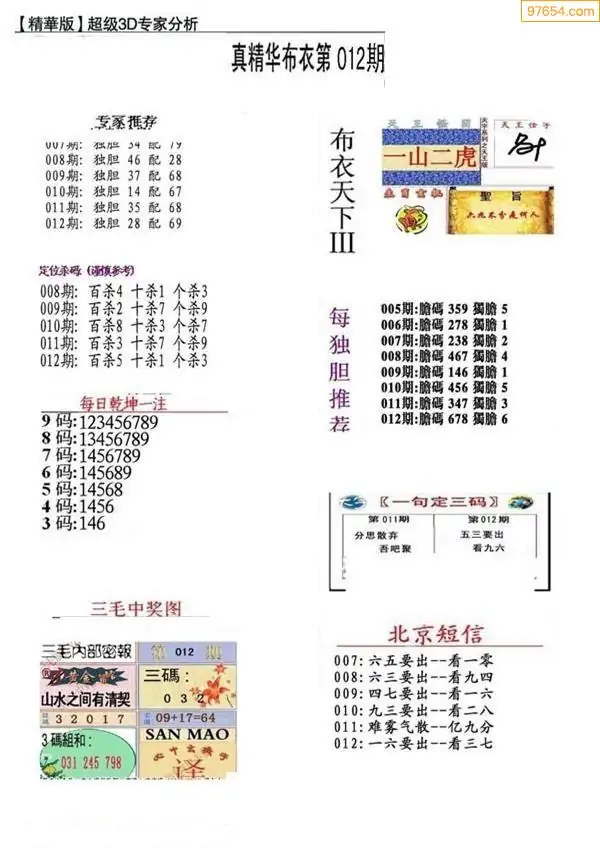 (2)26年012期本期3d图迷汇总_福彩3D图谜总汇图