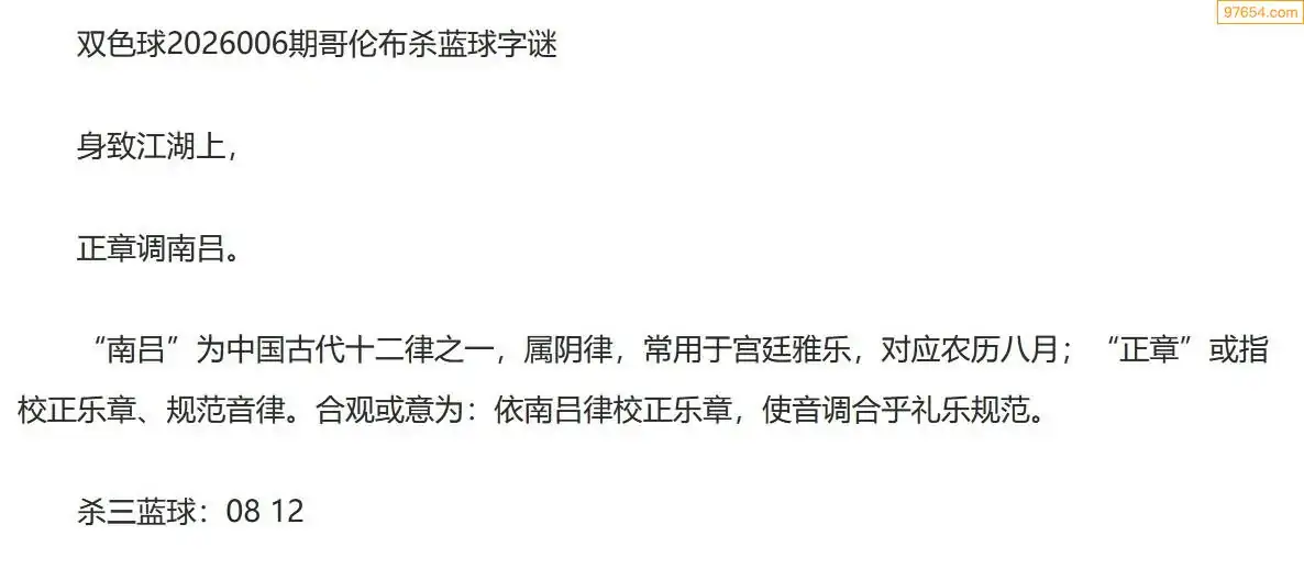 哥伦布双色球26年006期一句杀蓝球字迷