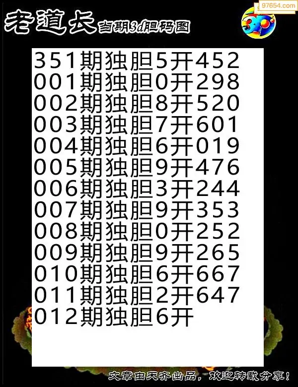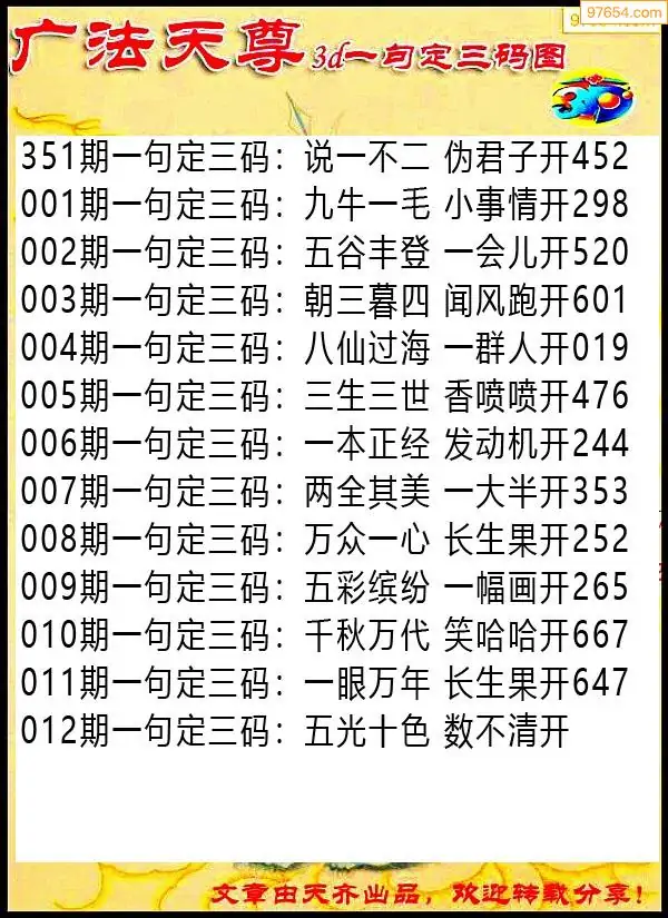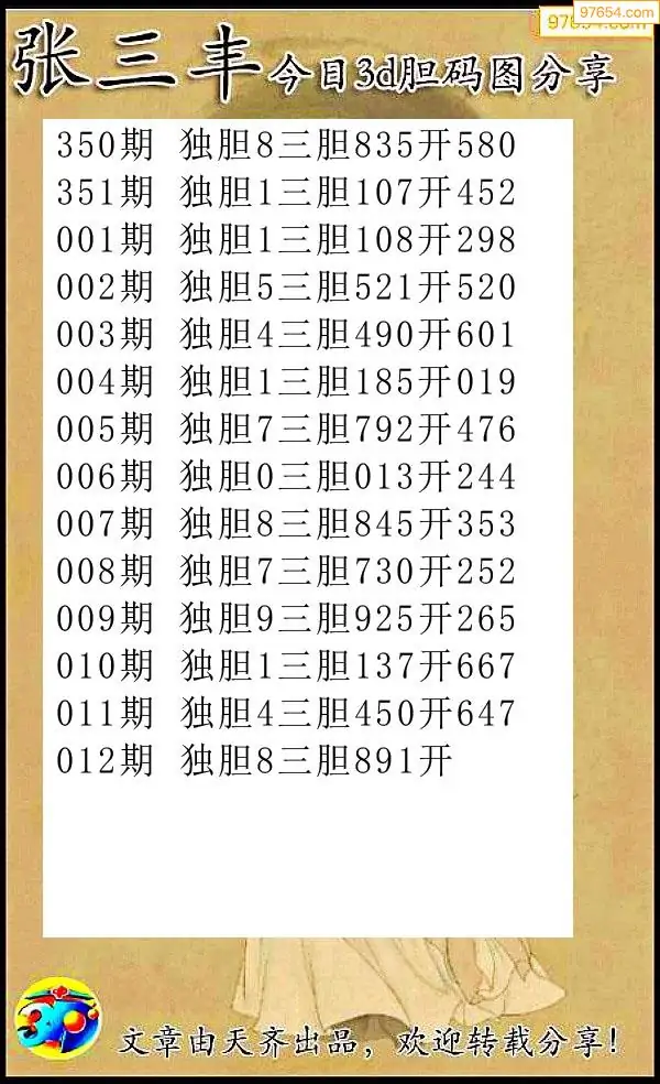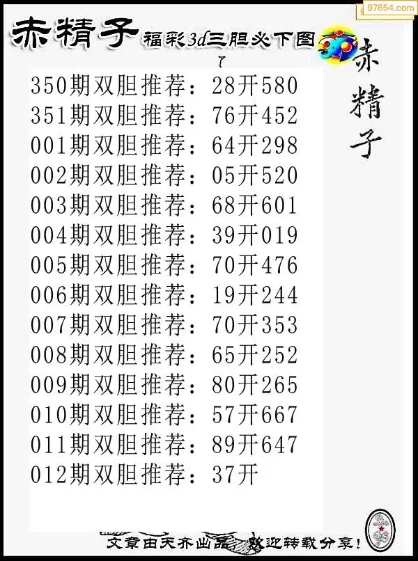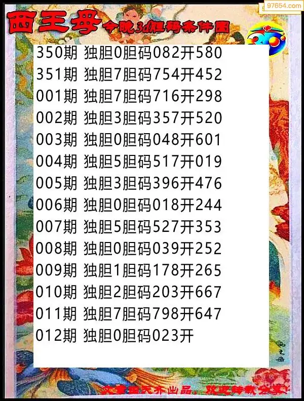 012期97654本站收集胆码出号预测