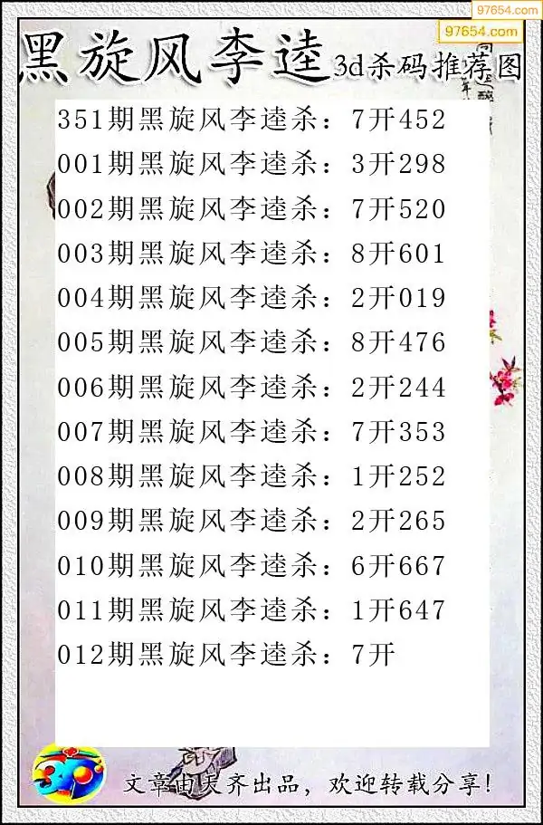 012期97654本站收集杀码出号预测