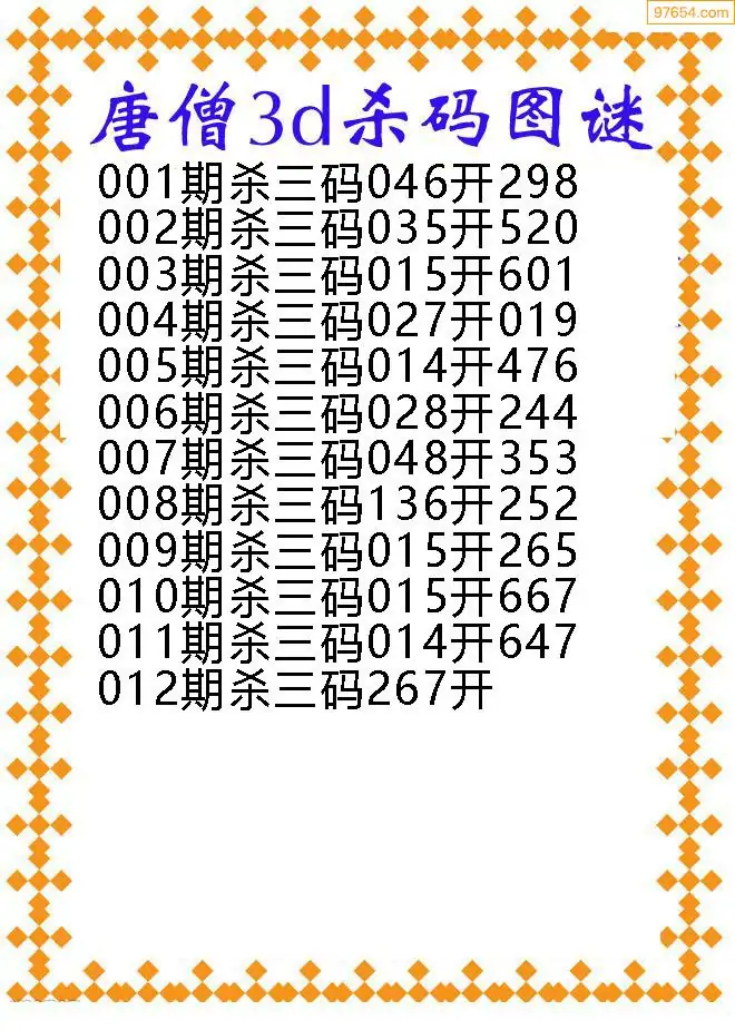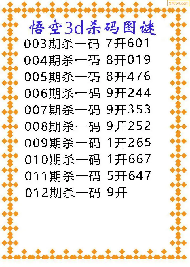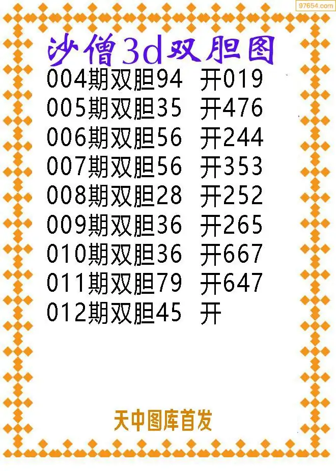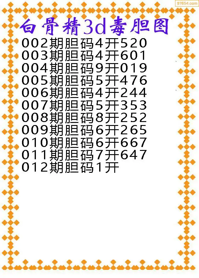 012期97654本站收集胆码出号预测