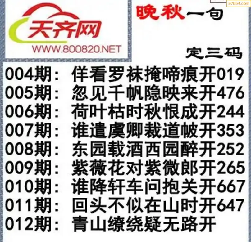 012期3d福彩今日晚秋字谜一句定三码