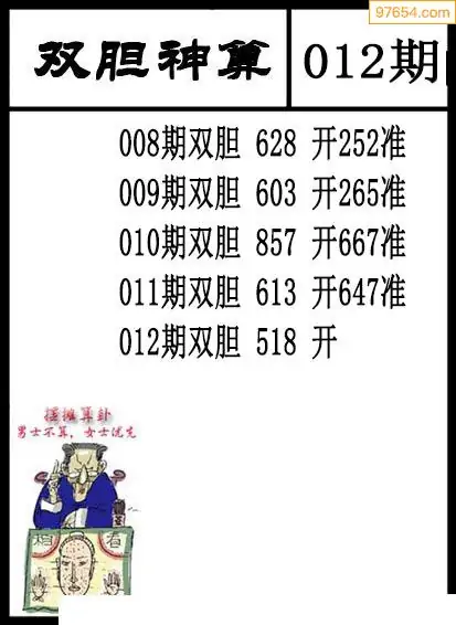 012期97654本站收集胆码出号预测