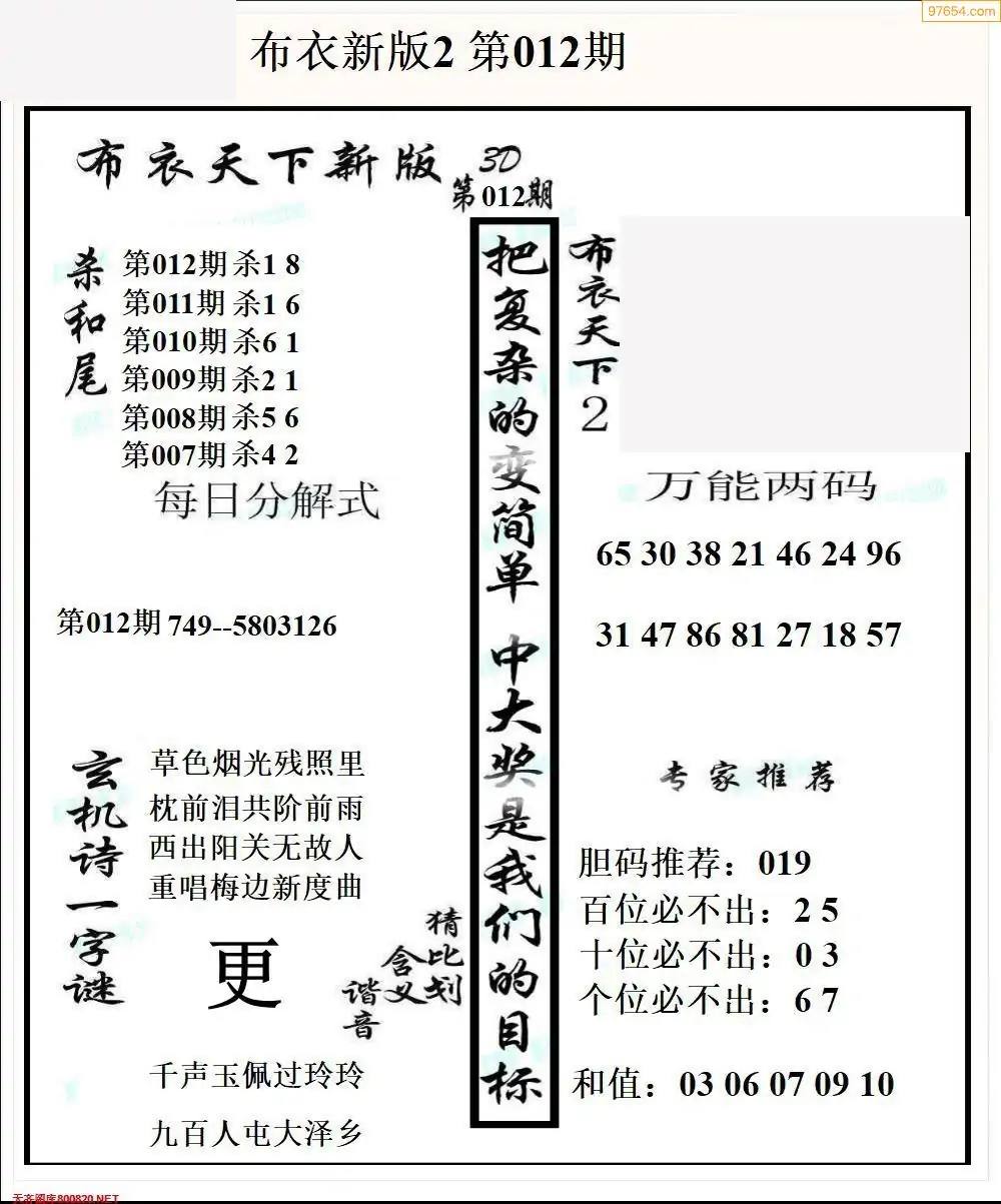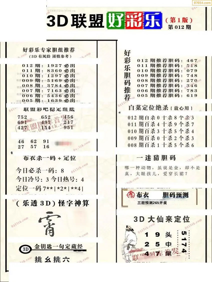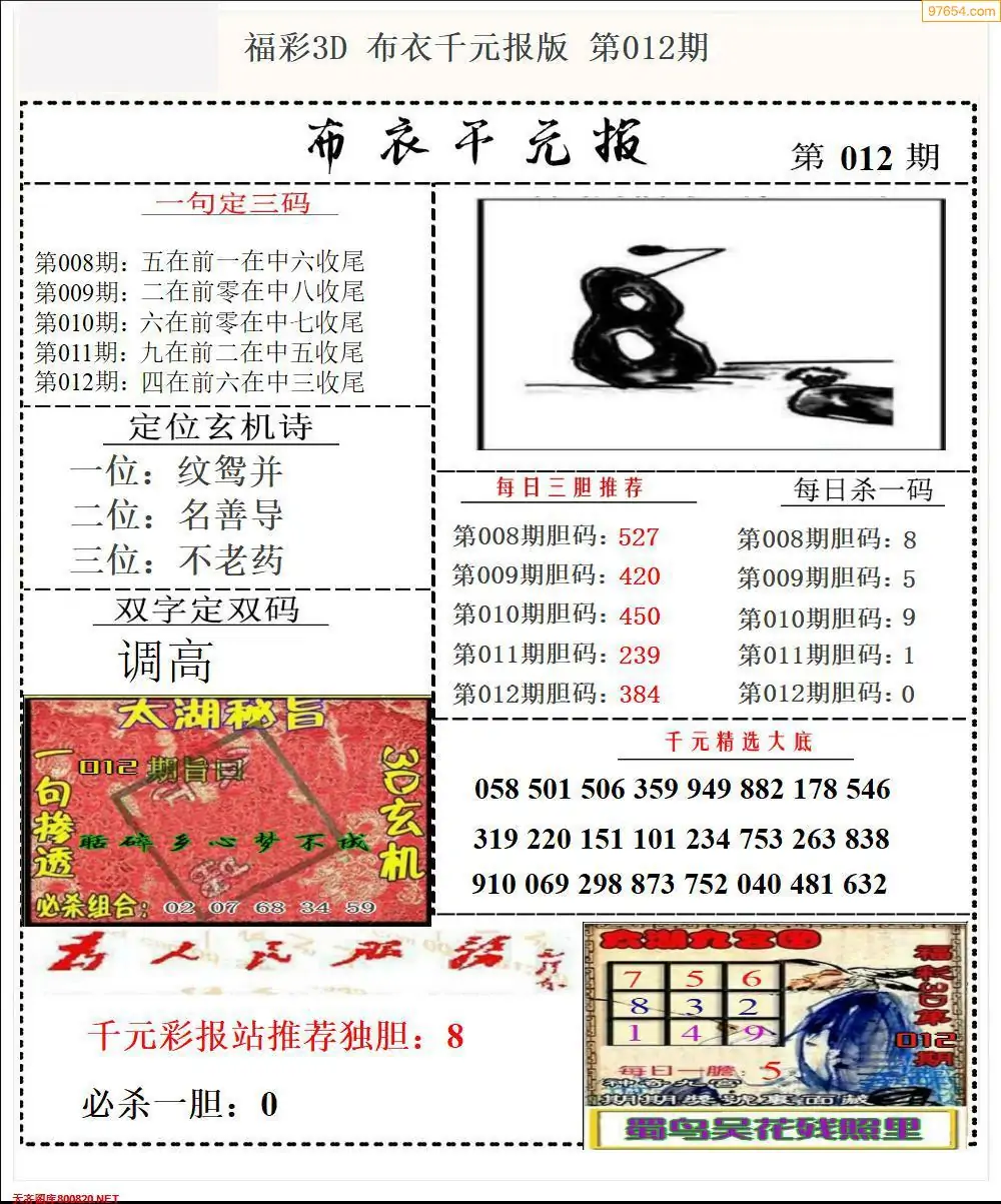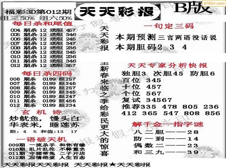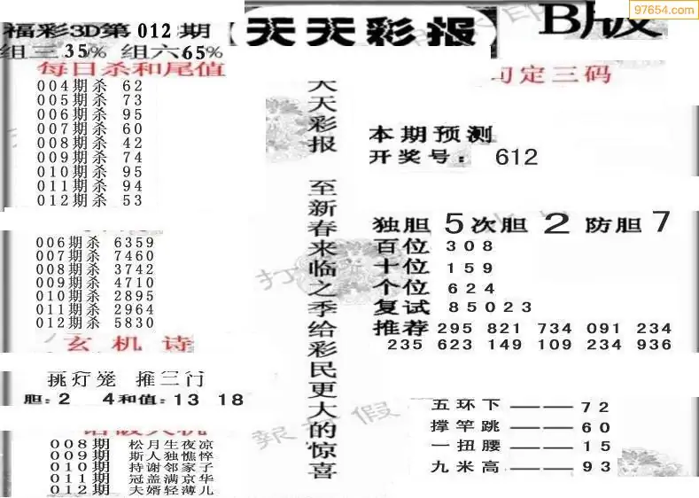 (8)26年012期今日3d各类彩报汇总