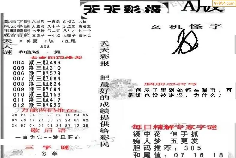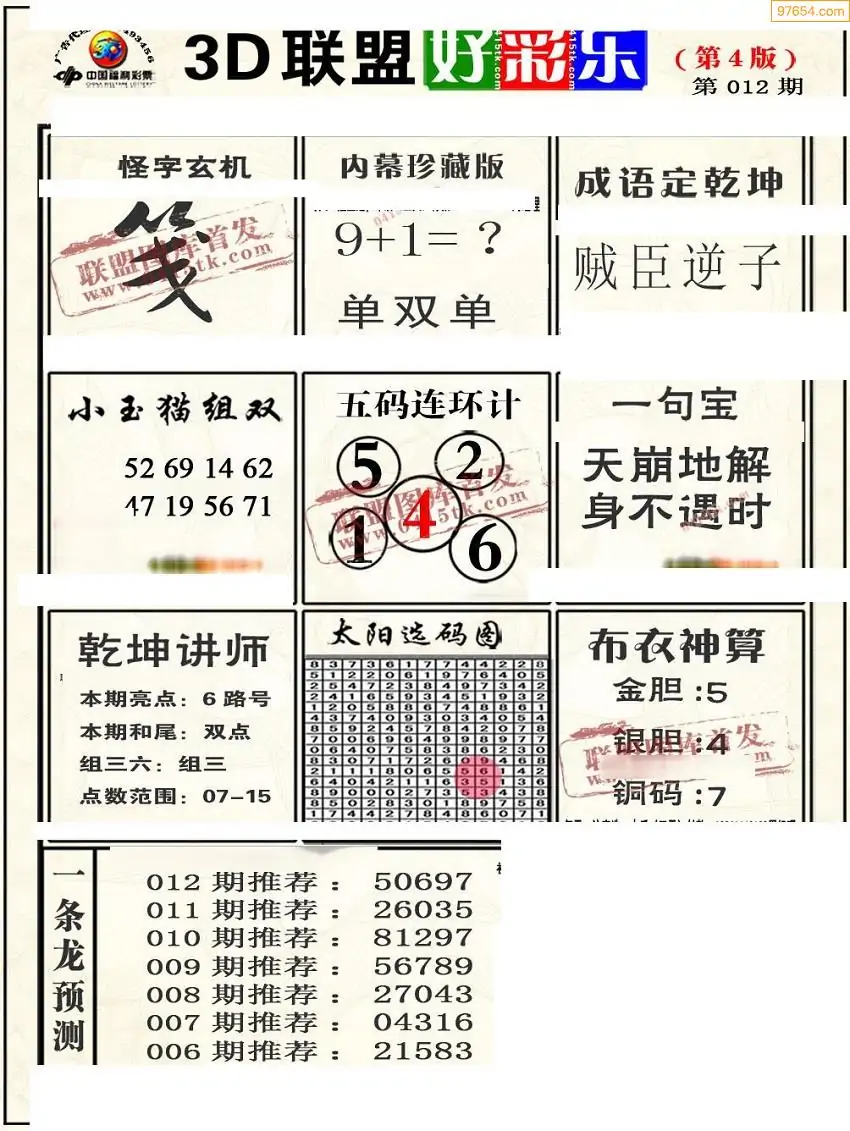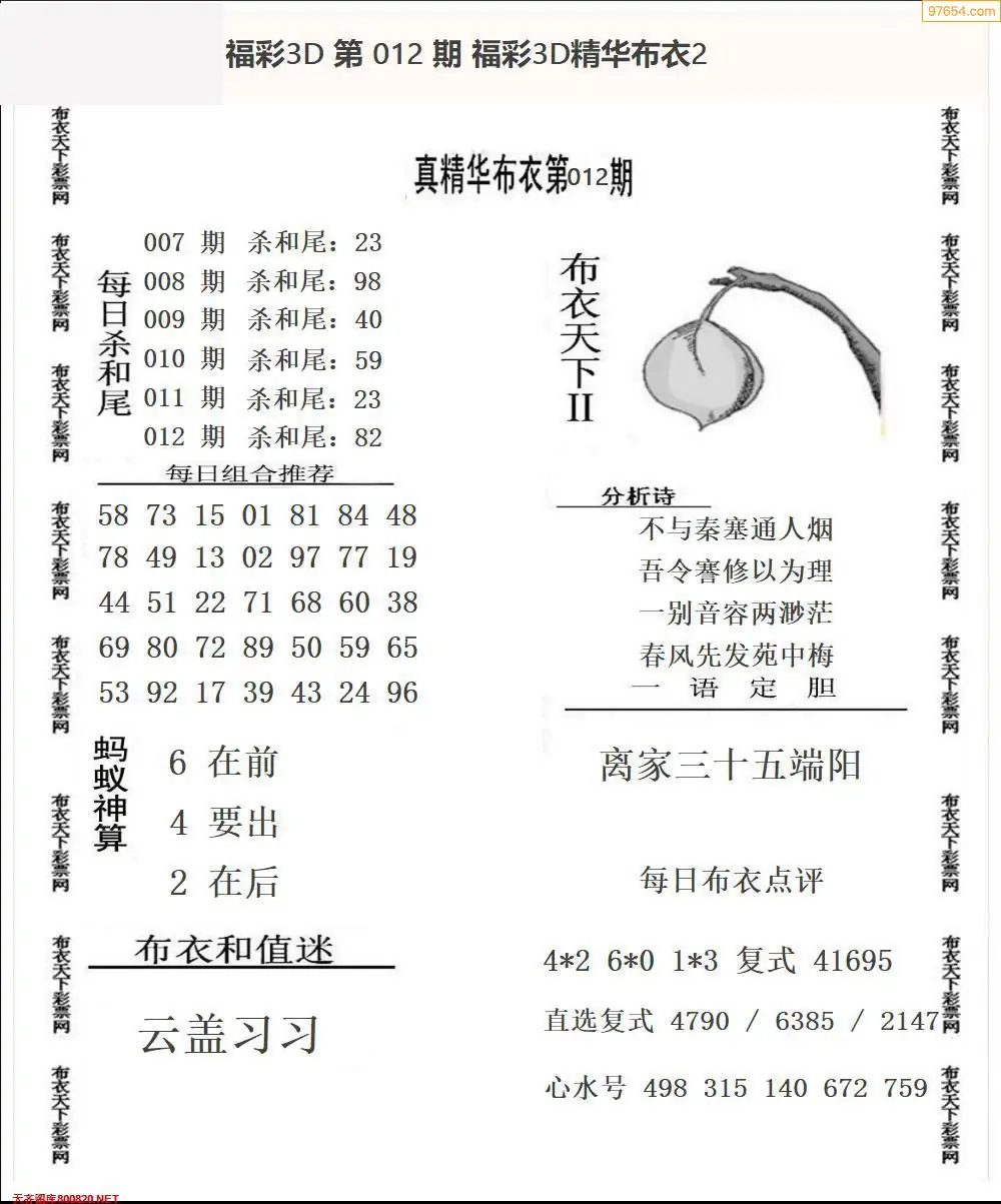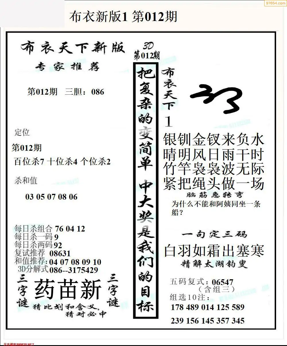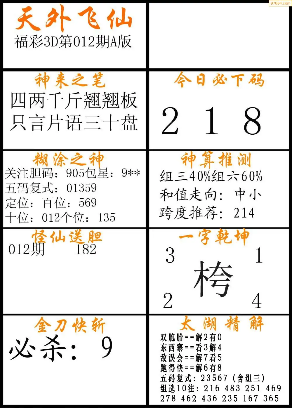 (8)26年012期今日3d各类彩报汇总