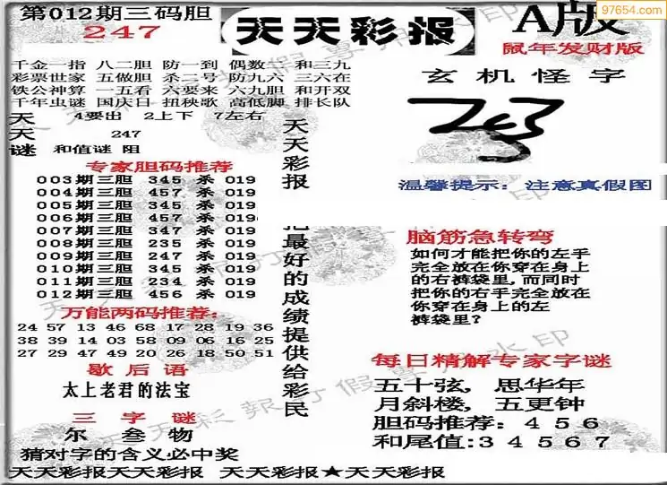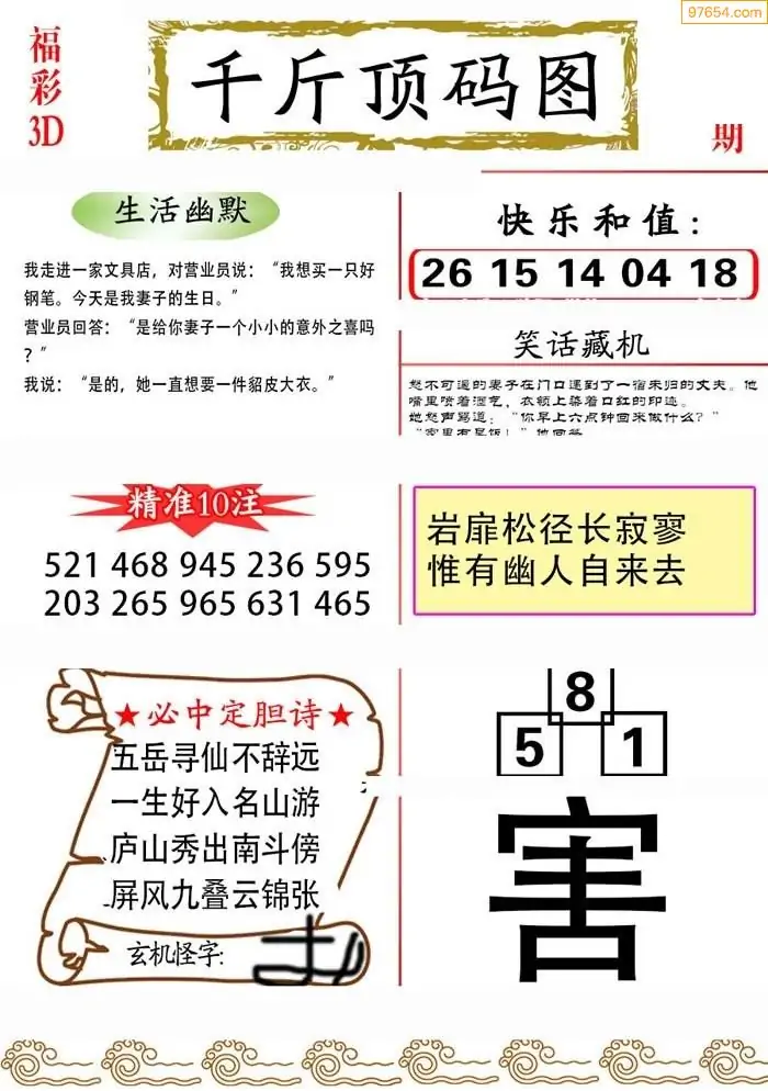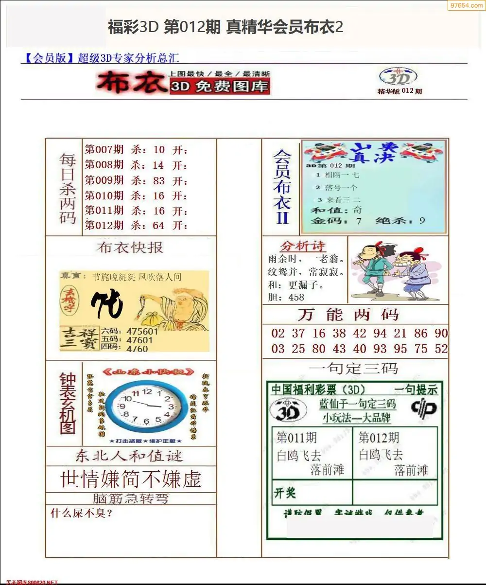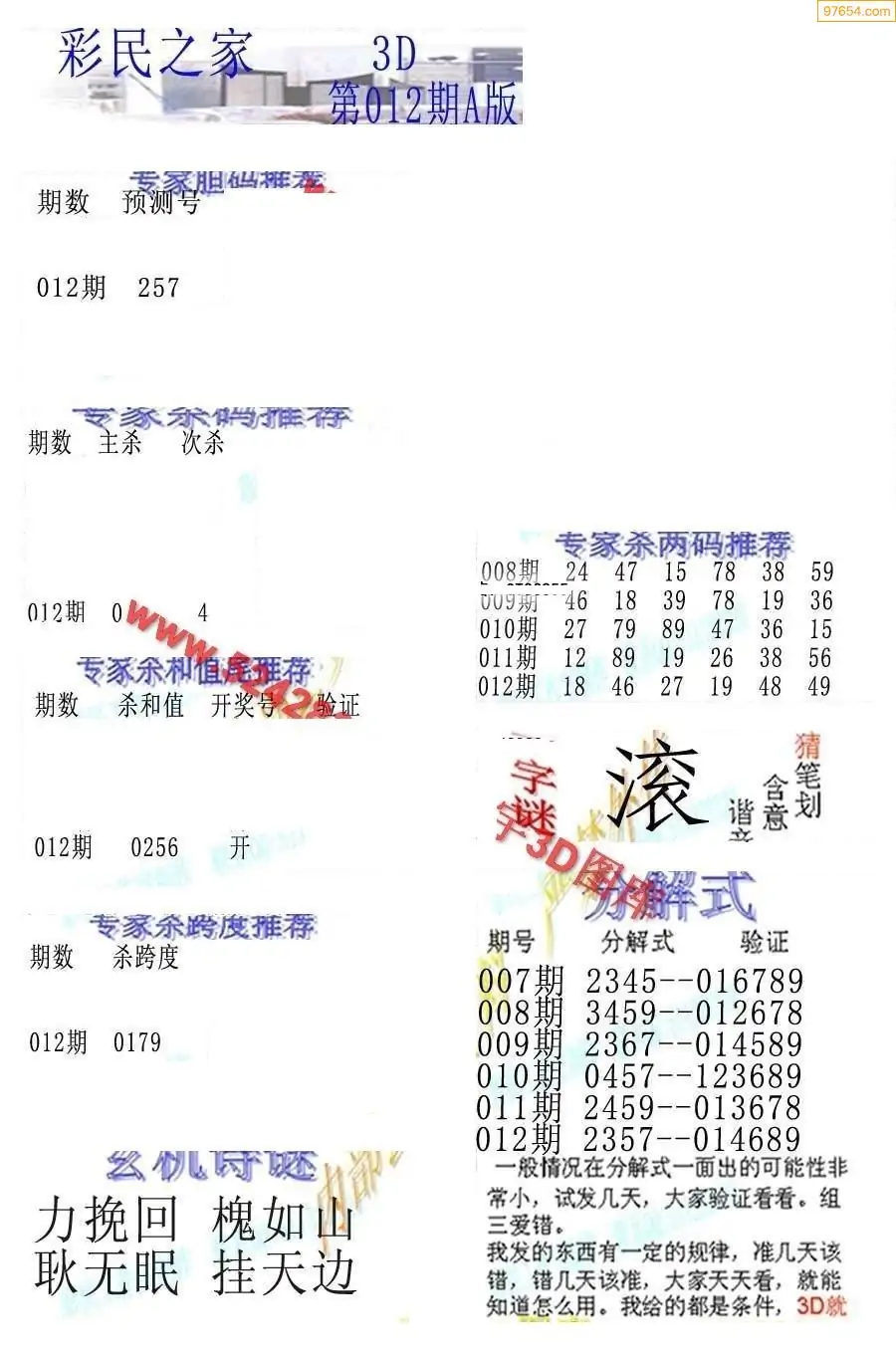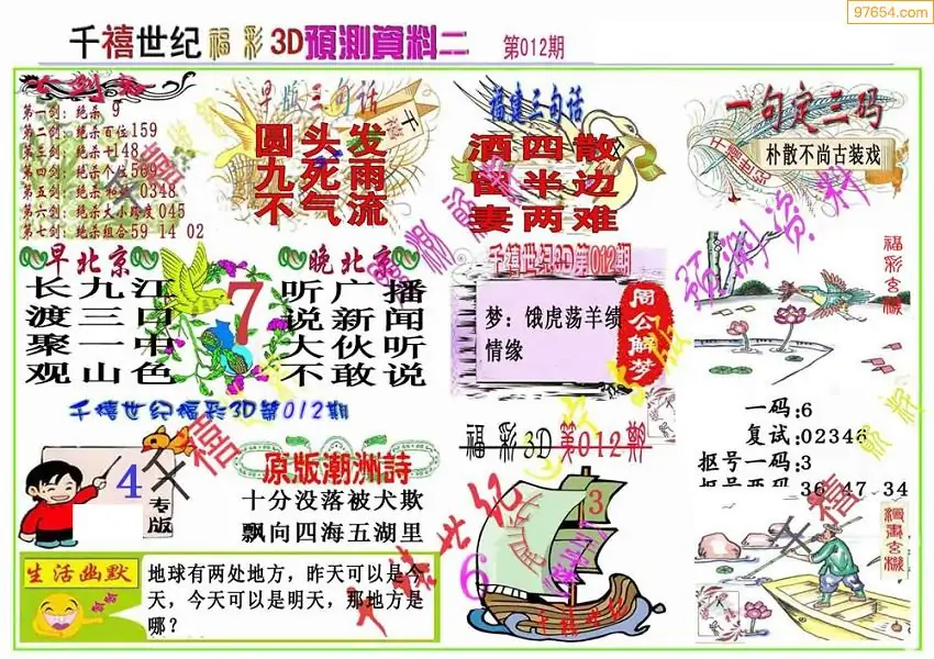 (3)2026012期3D预测总汇全图_福彩3d图谜字谜总汇