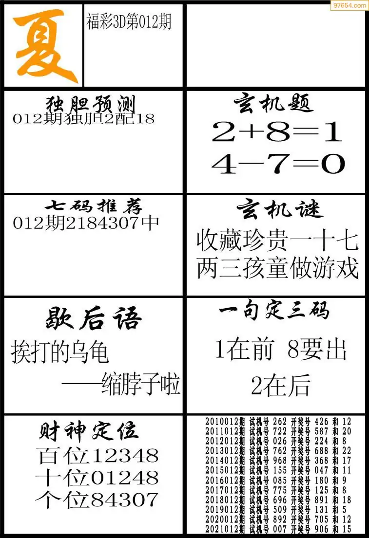 (2)26年012期本期3d图迷汇总_福彩3D图谜总汇图