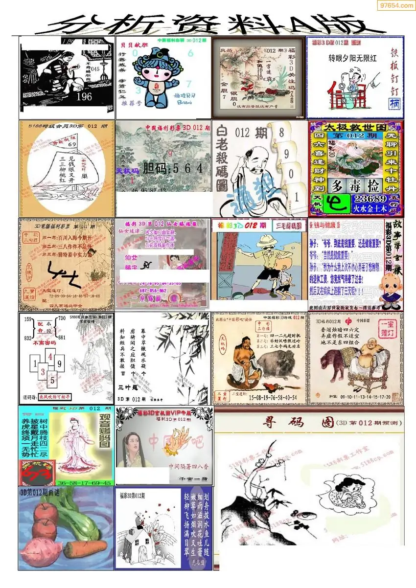 福彩3D012期天牛彩吧套图整合总汇