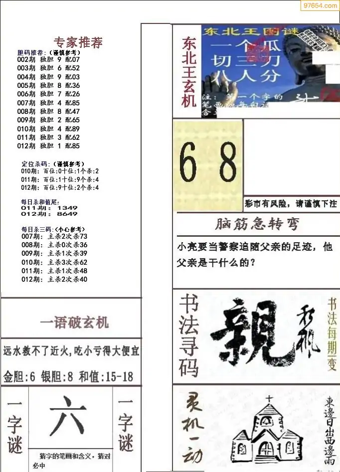 (3)2026012期3D预测总汇全图_福彩3d图谜字谜总汇