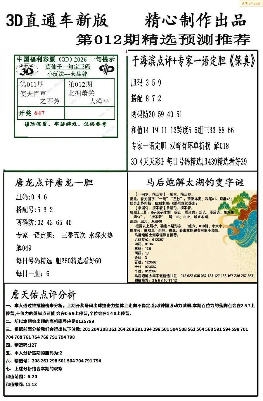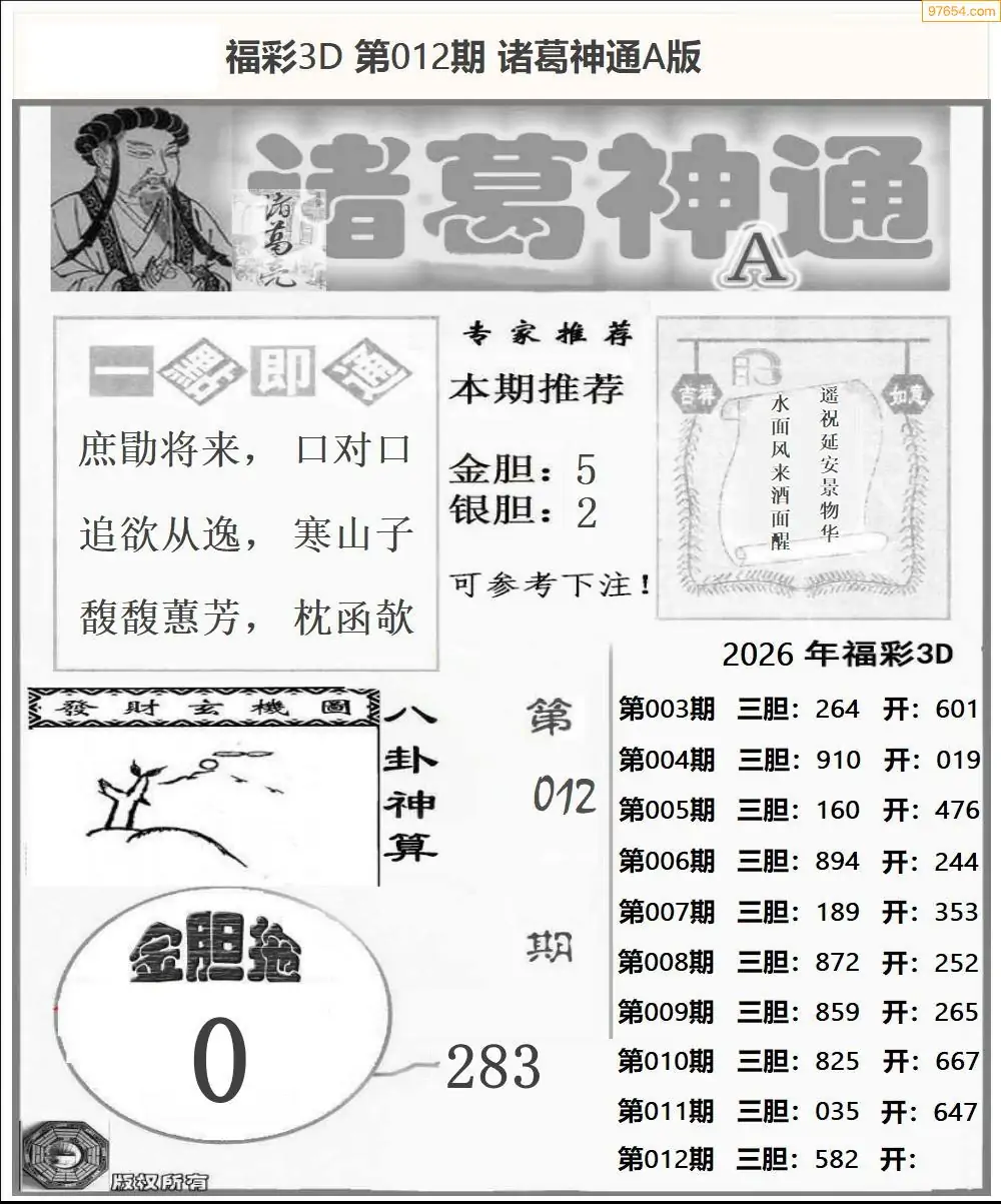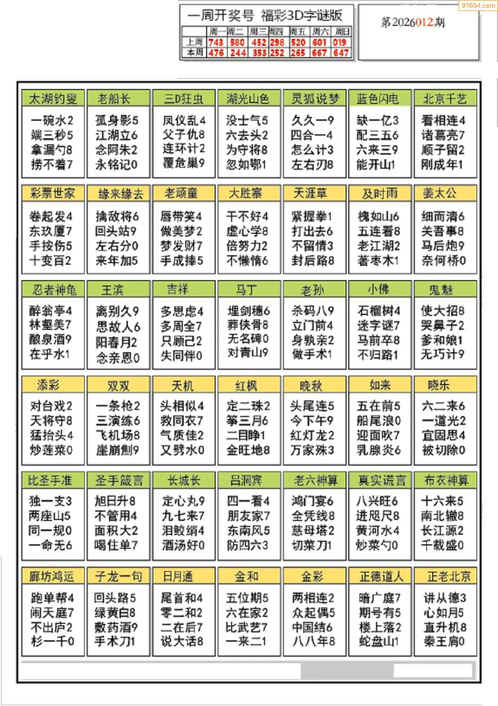 (2)26年012期本期3d图迷汇总_福彩3D图谜总汇图