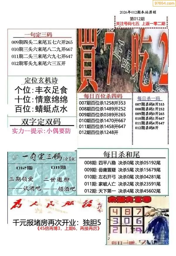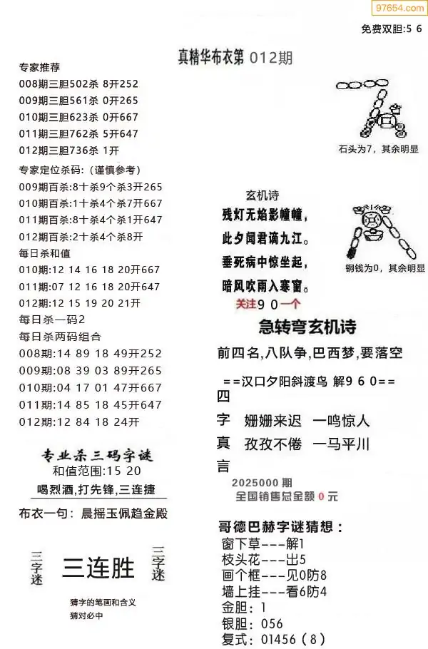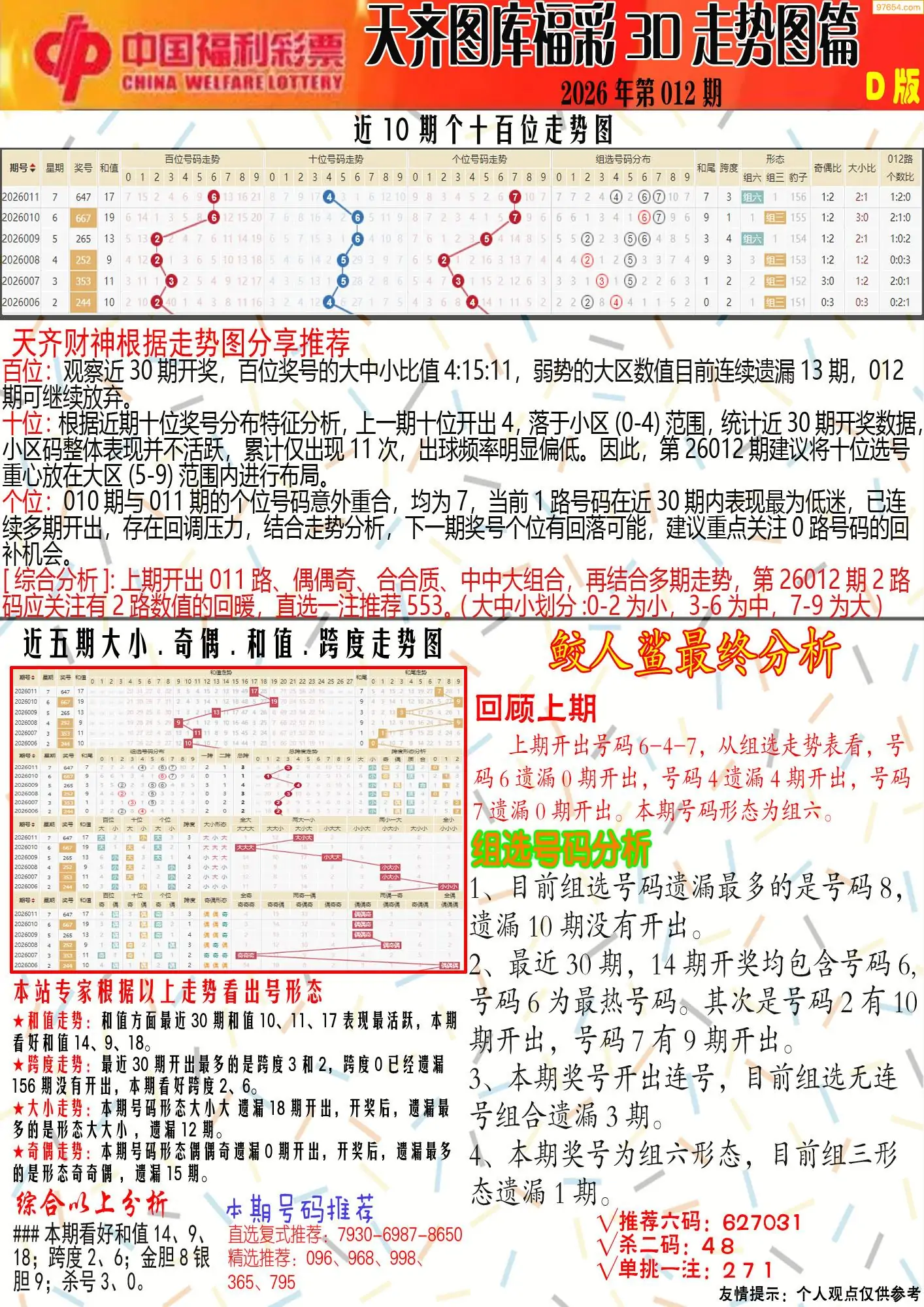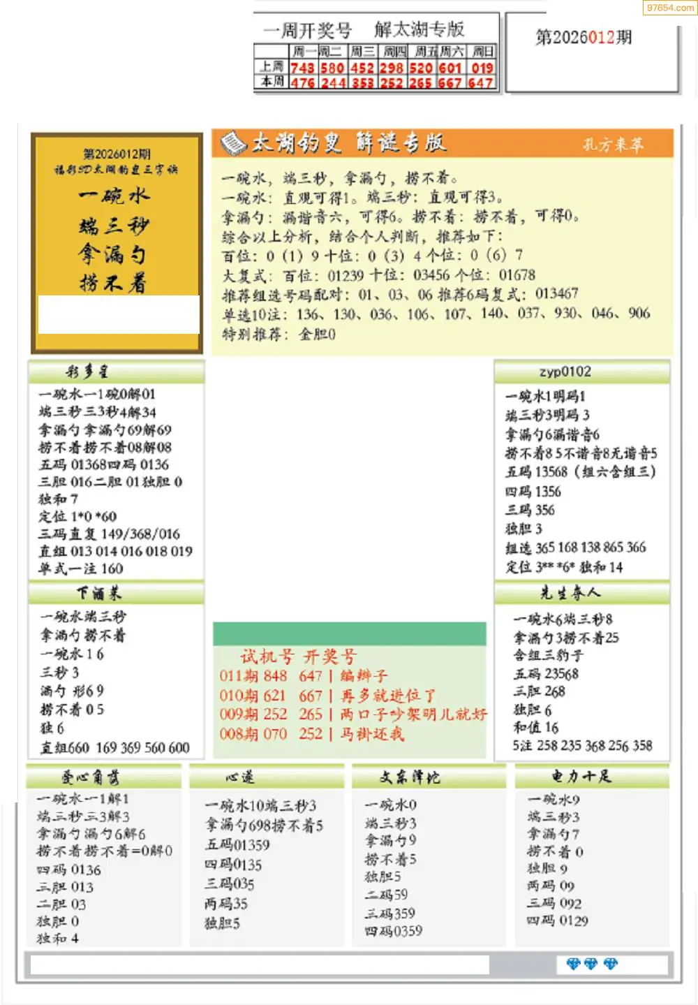 (2)26年012期本期3d图迷汇总_福彩3D图谜总汇图