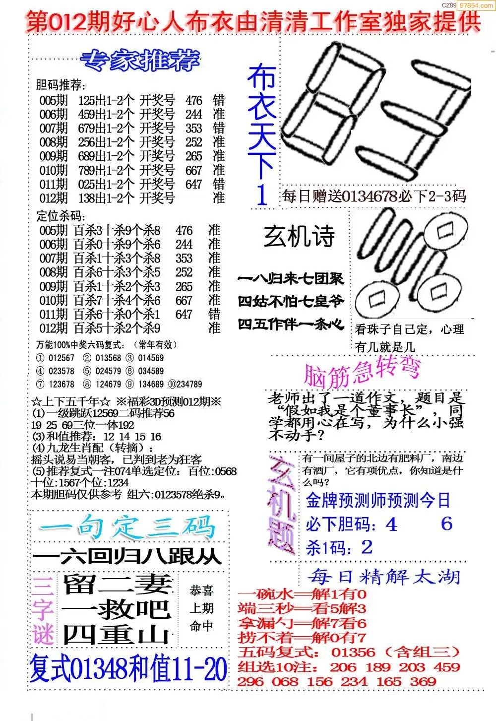 (1)26年012期今日3d图谜总汇_3d图库全图汇总