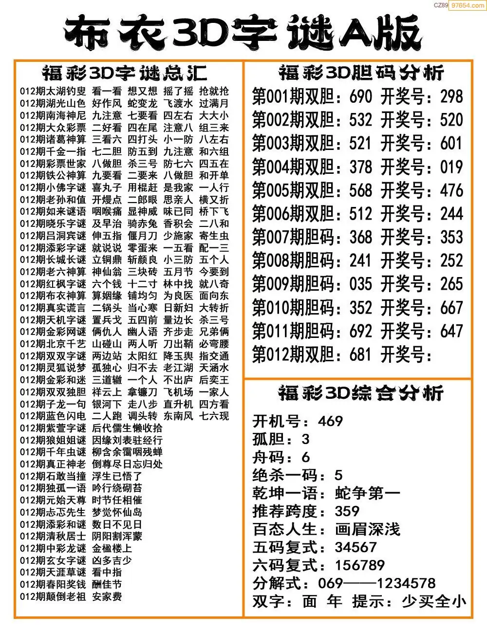 (3)2026011期3D预测总汇全图_福彩3d图谜字谜总汇