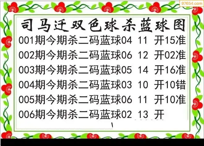 26年双色球006期司马迁杀二蓝破解图谜