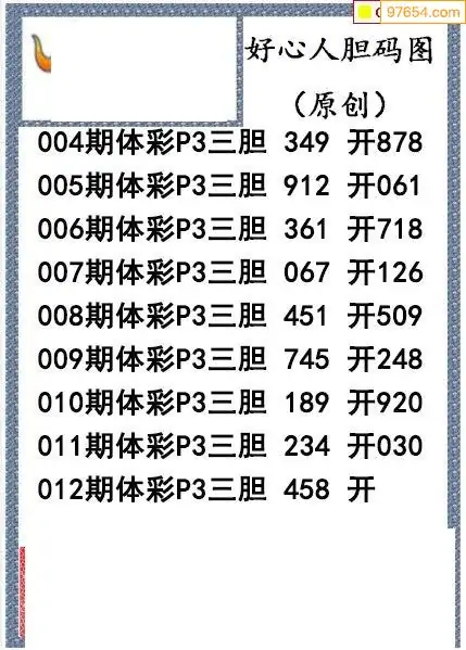 26012期好心人送胆排列三图谜