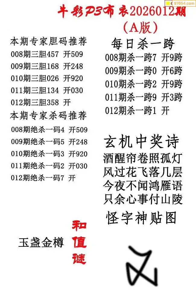 26年天吉体彩P3玄机怪字012期图迷