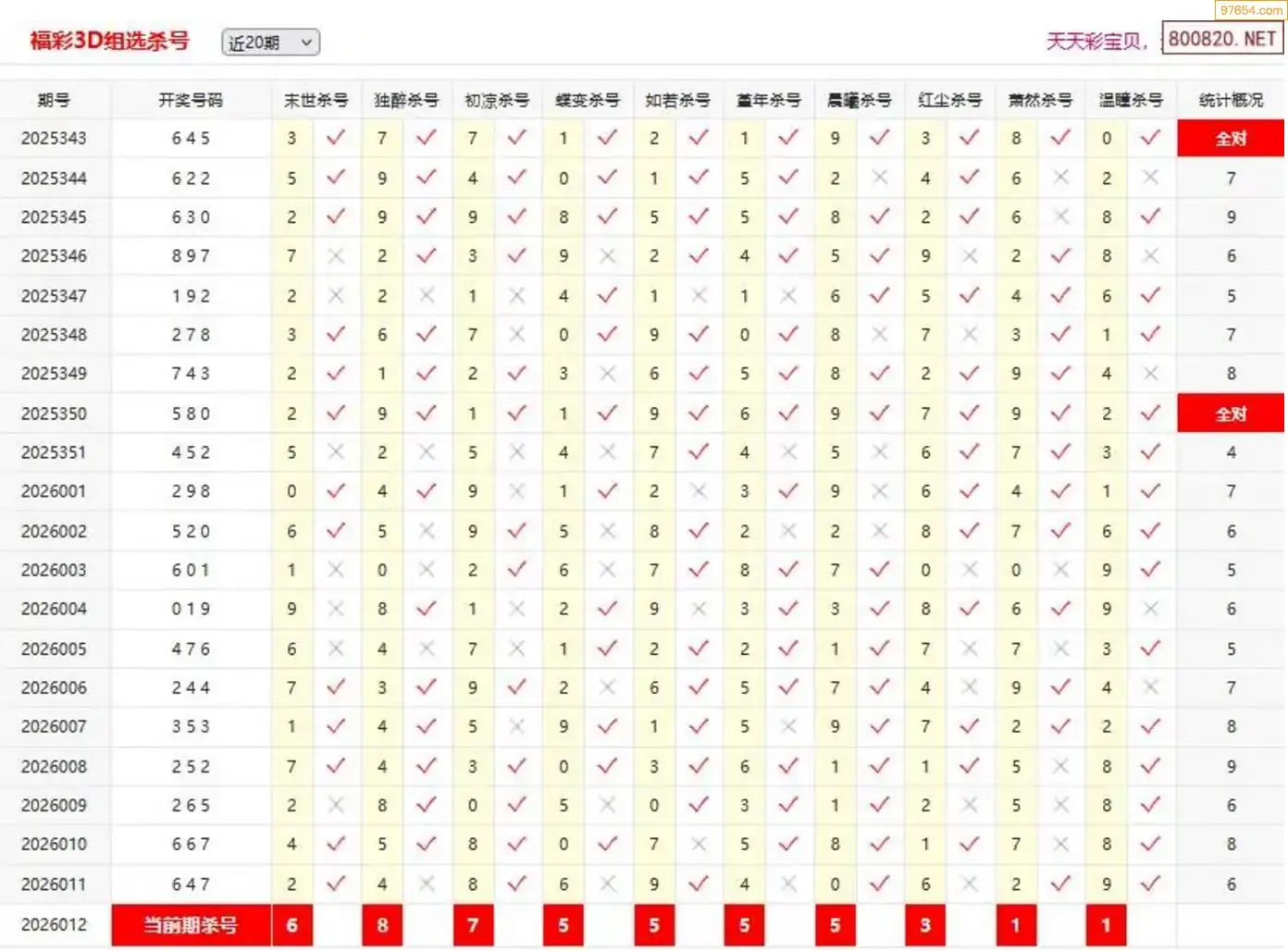 胡八一3d26年013期杀号一胆 6连中