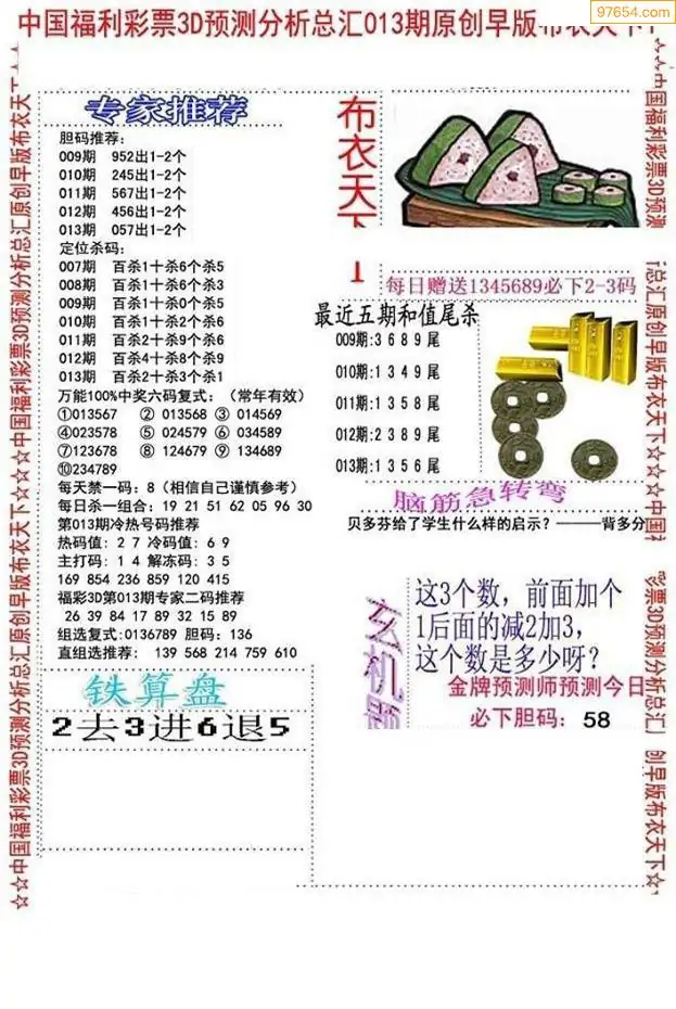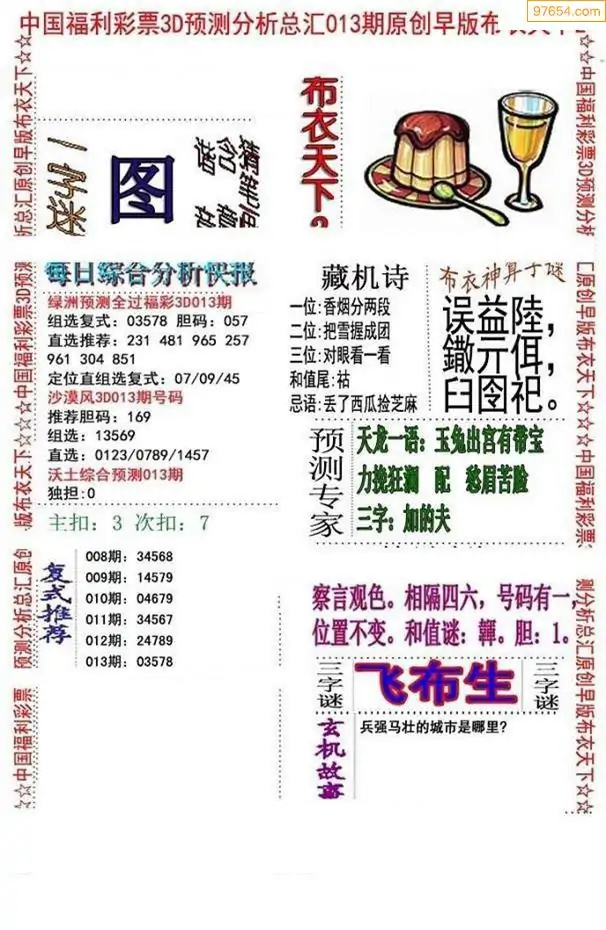福彩013期3d真精华布衣+布衣早报(转载)