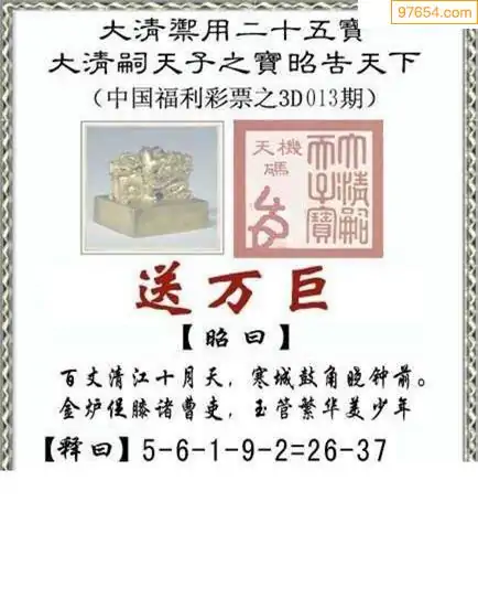 26年013期真天天图3d图迷
