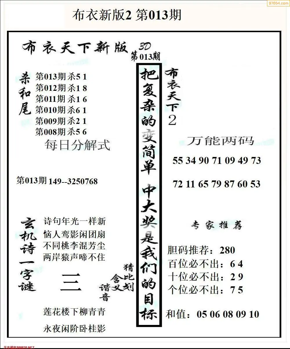 013期真精布衣3d正版布衣123456(原创)