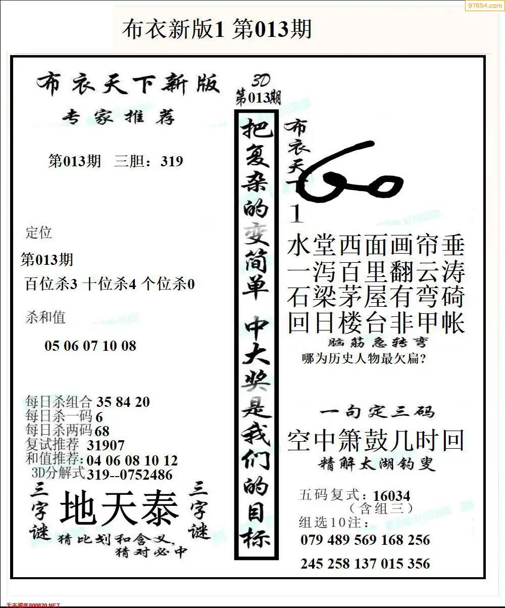 26013期早版布衣天下3D图迷