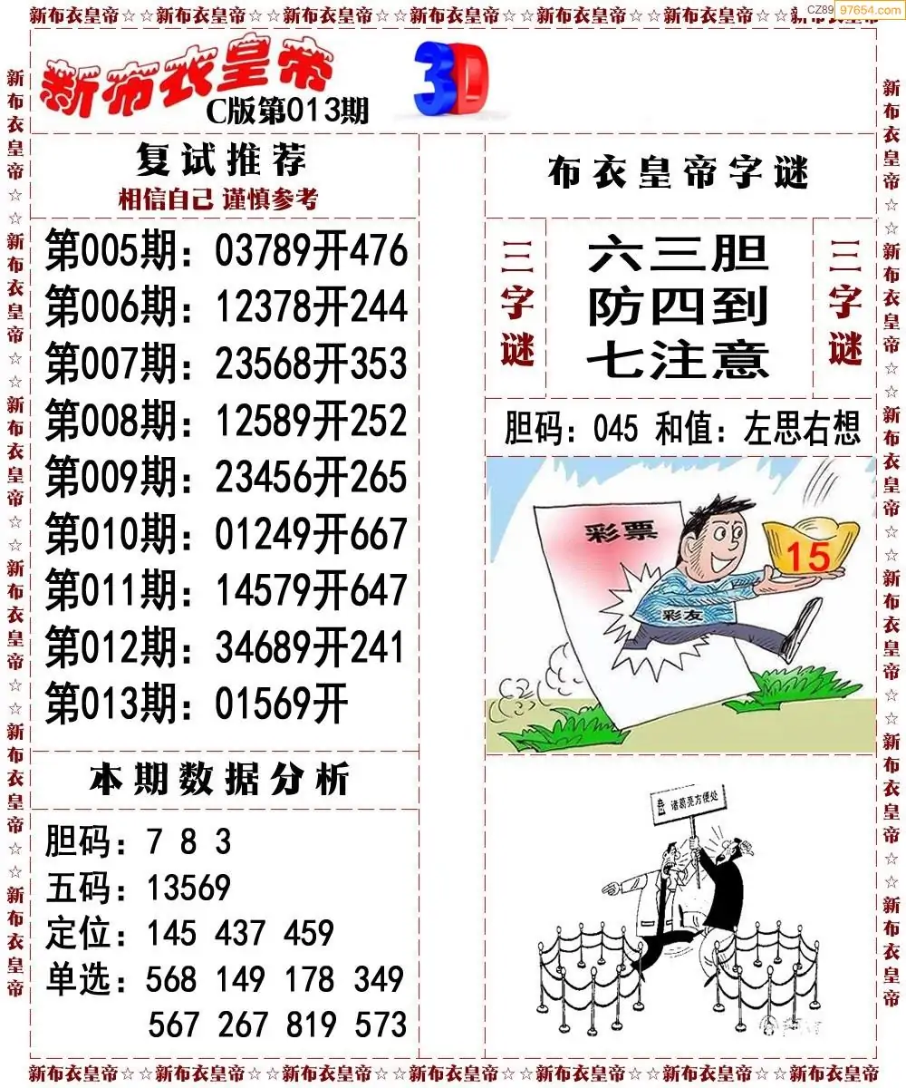 26013期3d新布衣皇帝早间四版