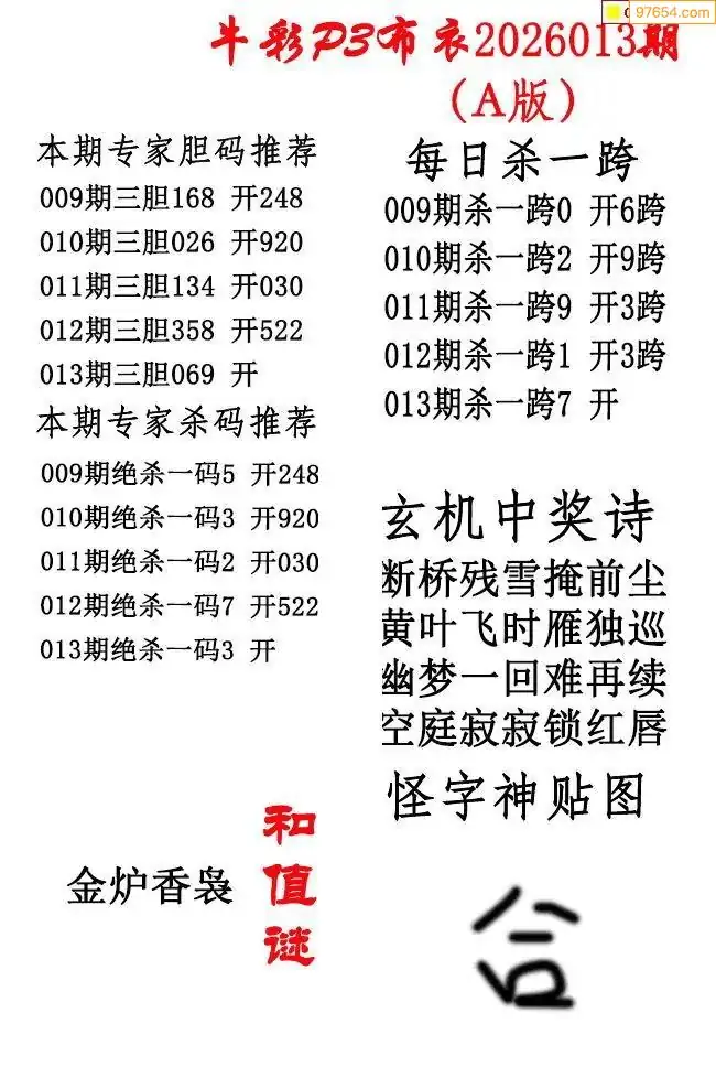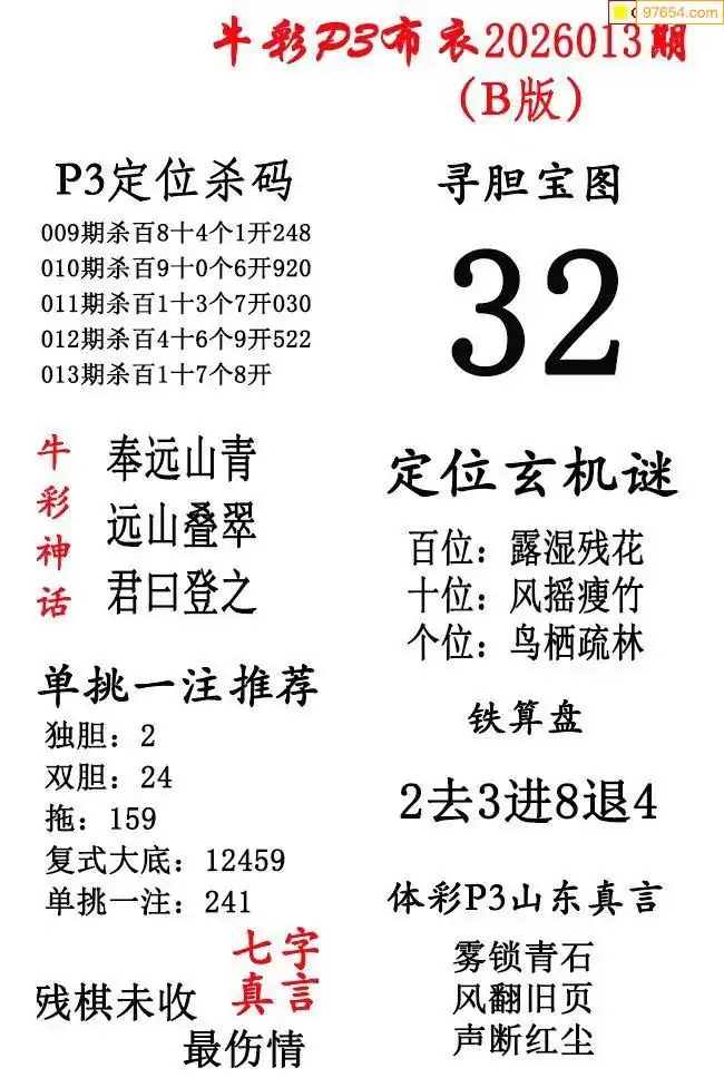 2026年013期北盟天机图+p3仙机图谜 _p3图谜汇总看点