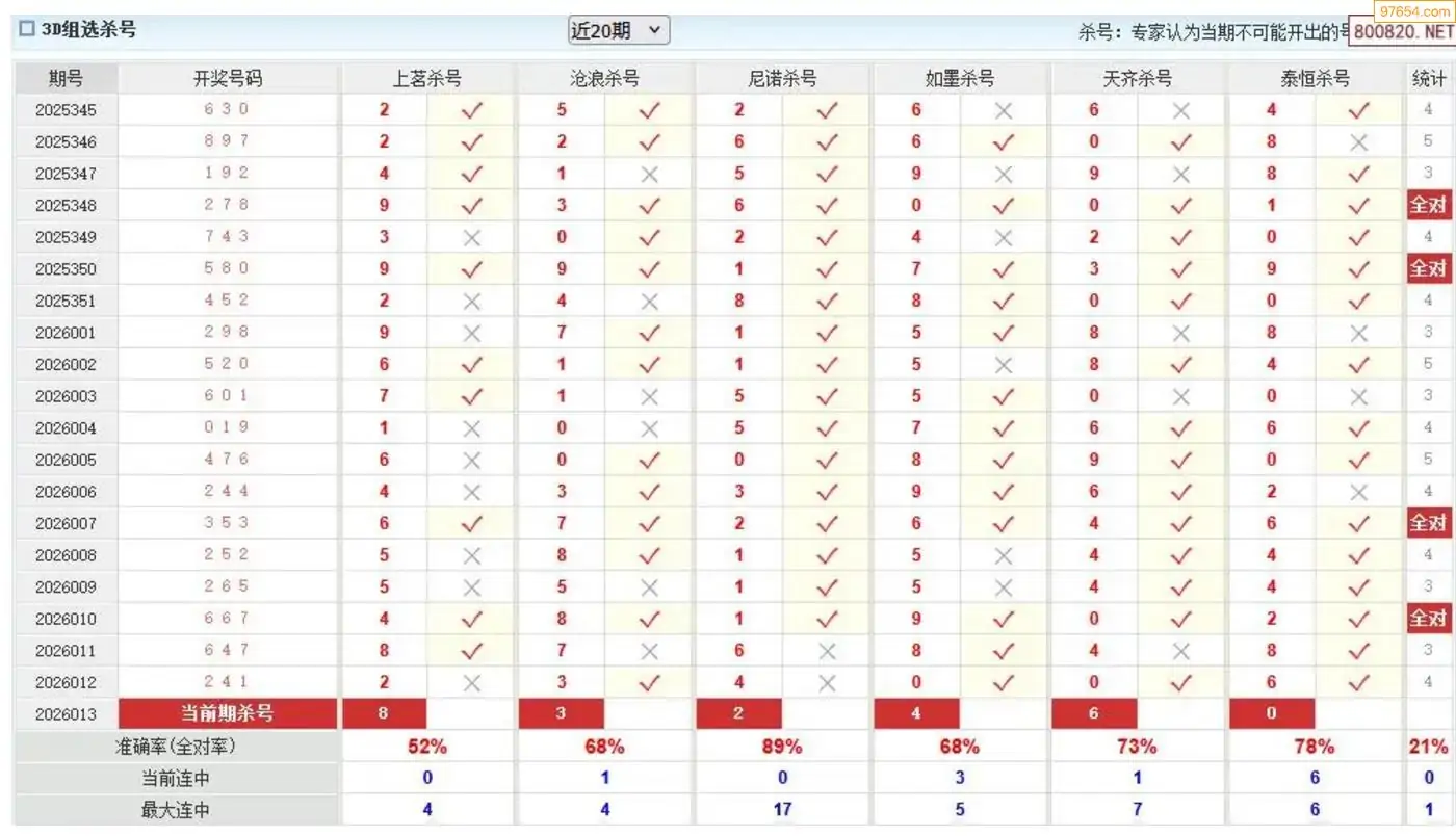 福彩3d澳客专家杀组选26年013期