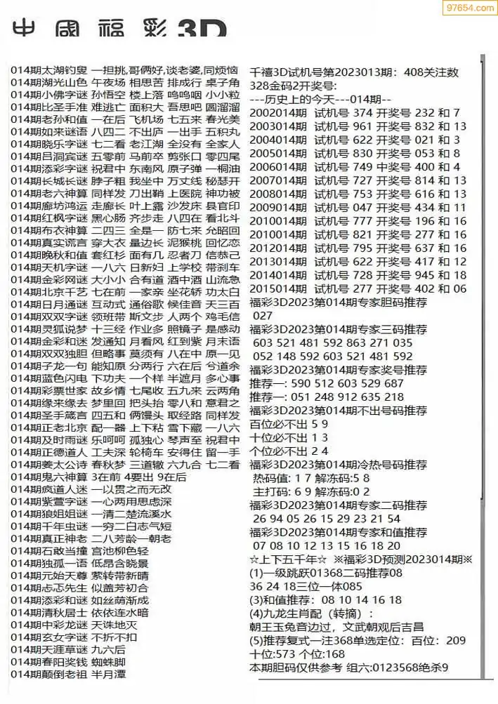 福彩3D014期天牛彩吧套图整合总汇