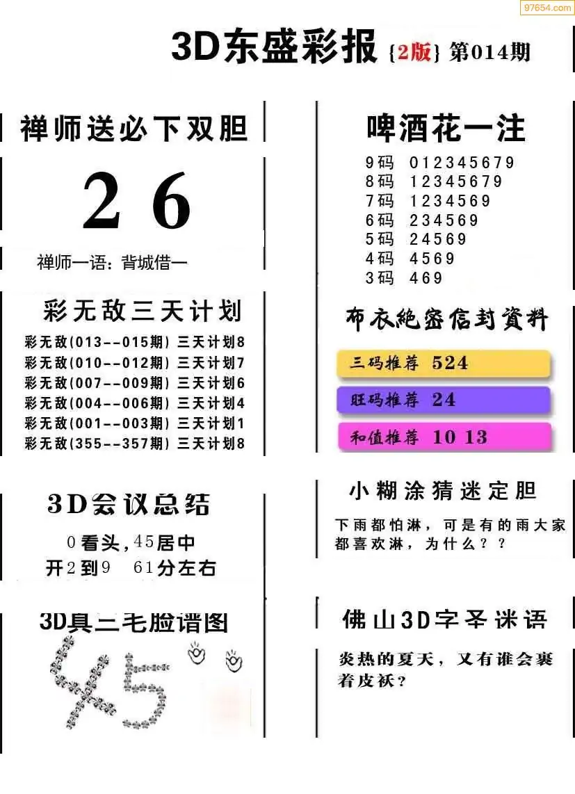 26014期丹东一句定三码(正版)_今晚3D图谜
