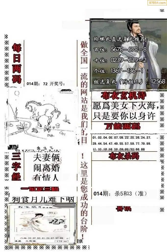 014期3D彩吧图库精华布衣图123456分享