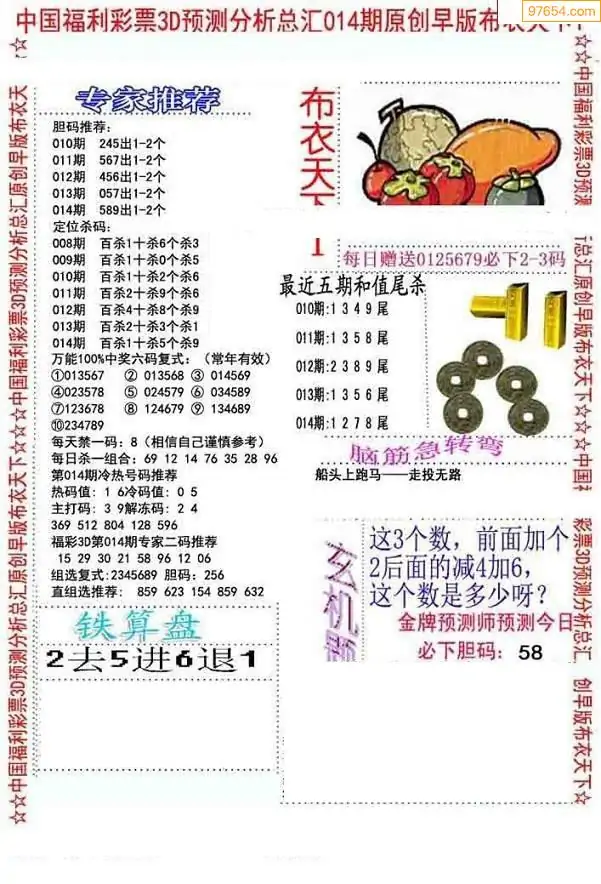 福彩014期3d真精华布衣+布衣早报(转载)