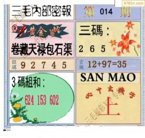 (8)26年014期今日3d各类彩报汇总