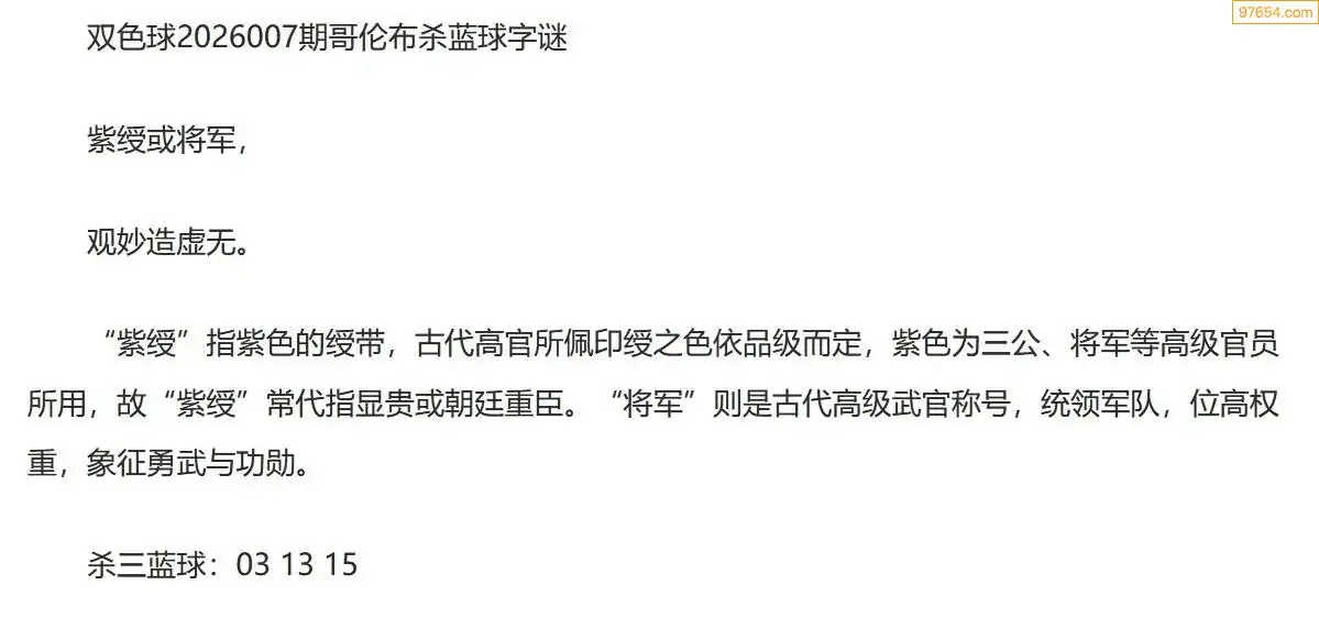 哥伦布双色球26年007期一句杀蓝球字迷