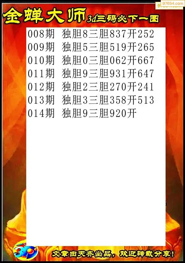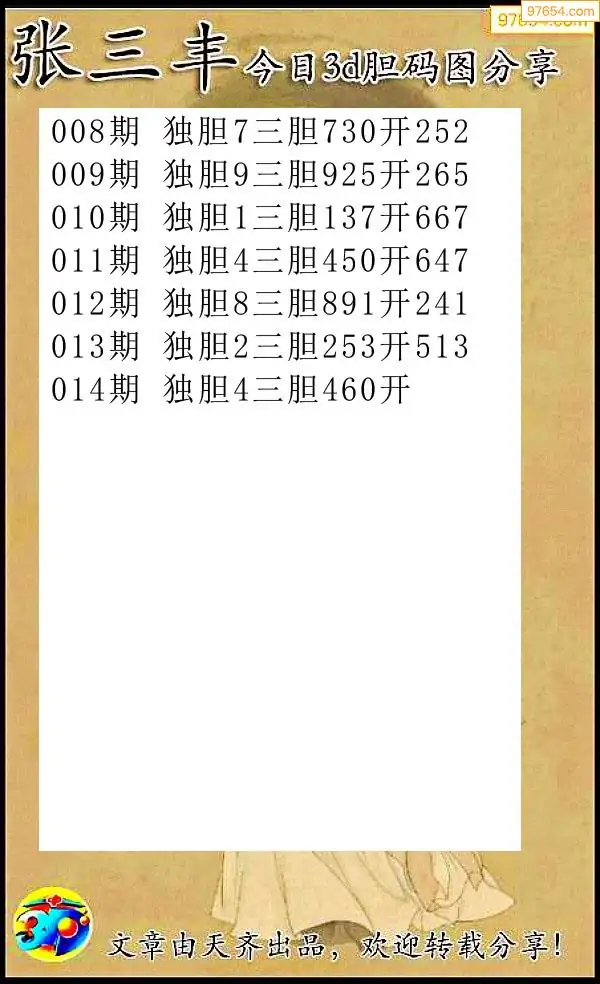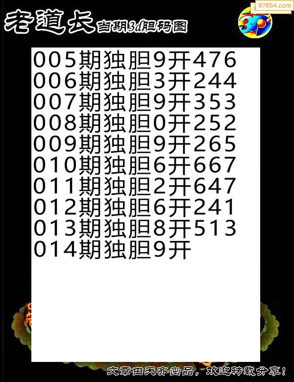 2026014期彩彩网3d原创图迷搜集(天中整理)