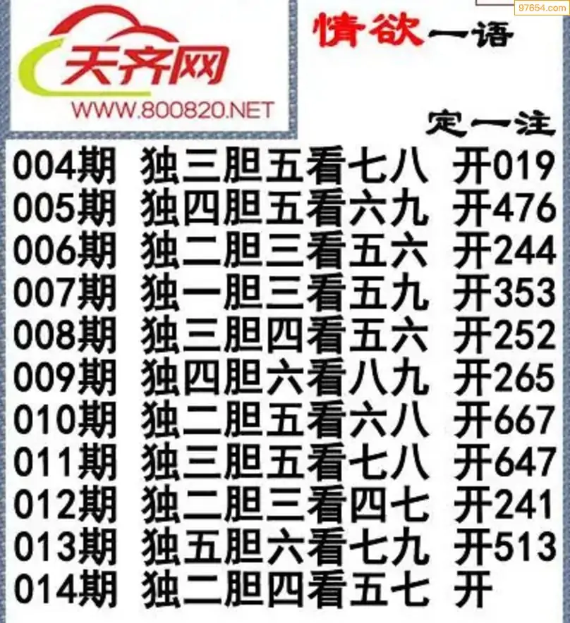 福彩3D26014期蓝仙子一句定三码