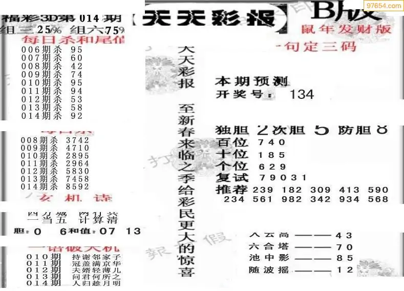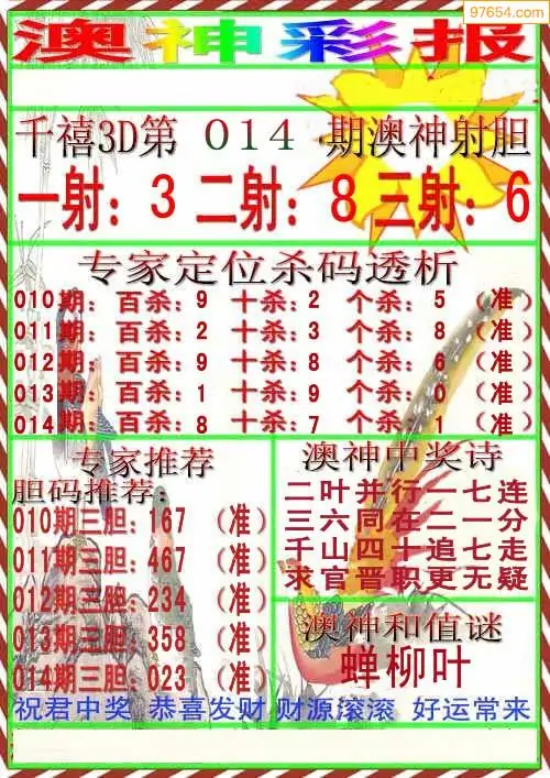 (8)26年014期今日3d各类彩报汇总