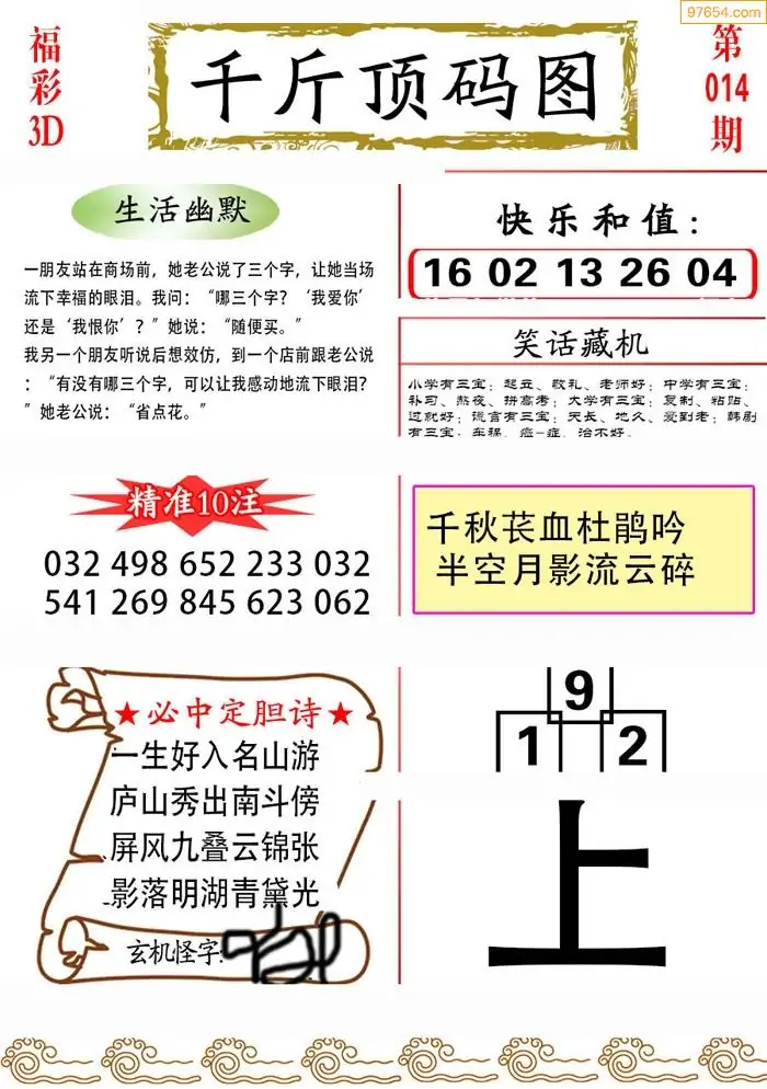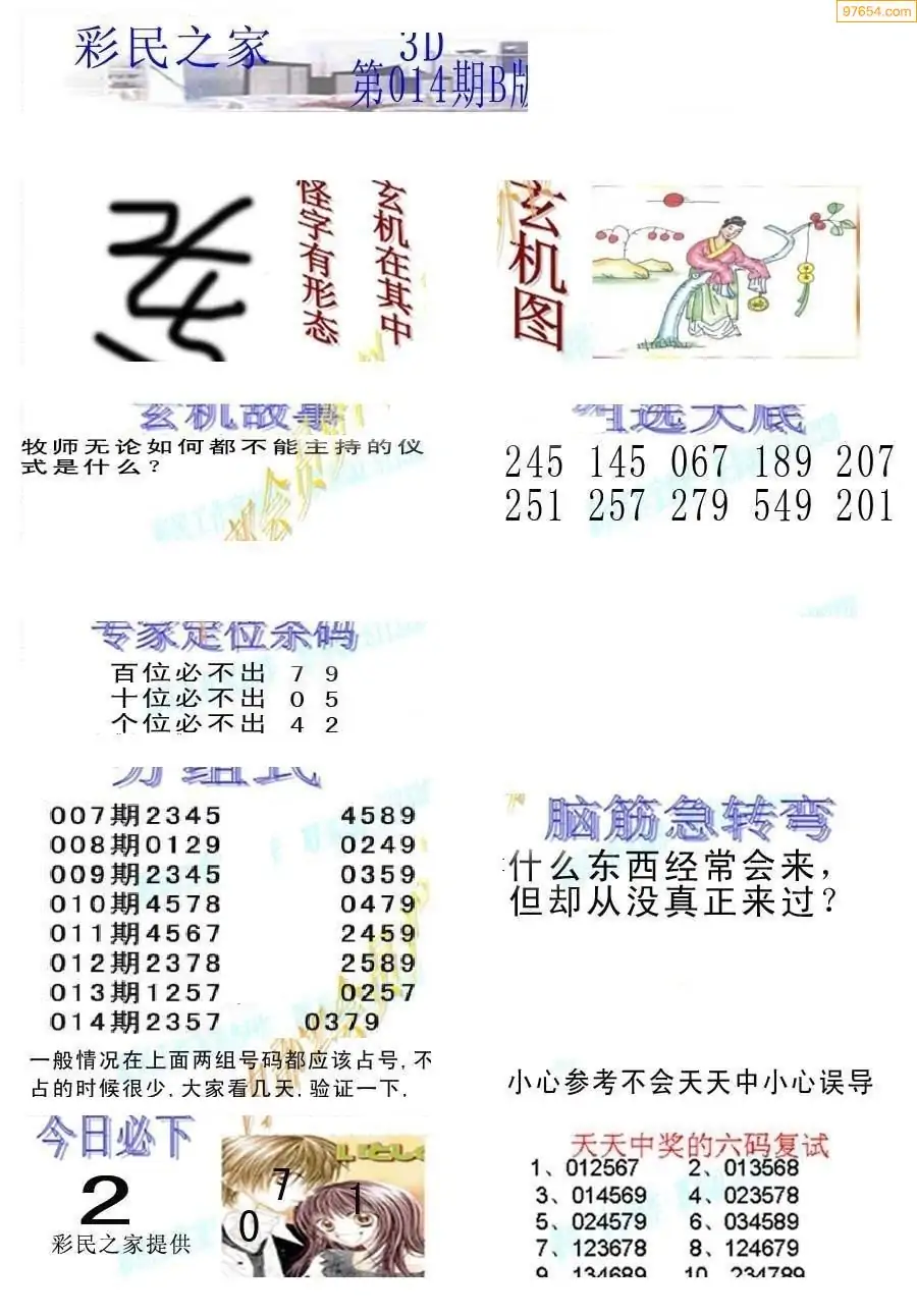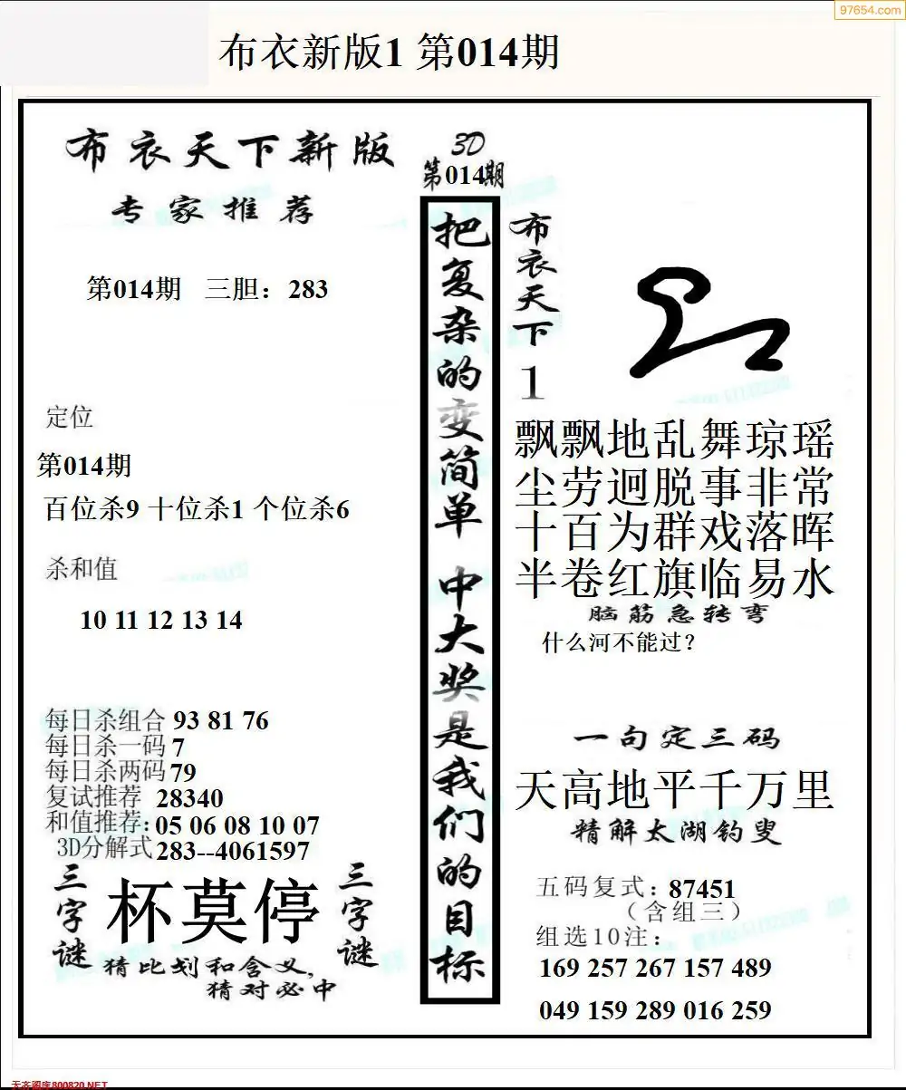 (3)2026014期3D预测总汇全图_福彩3d图谜字谜总汇