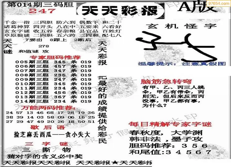 (5)26年014期福彩字谜图谜总汇